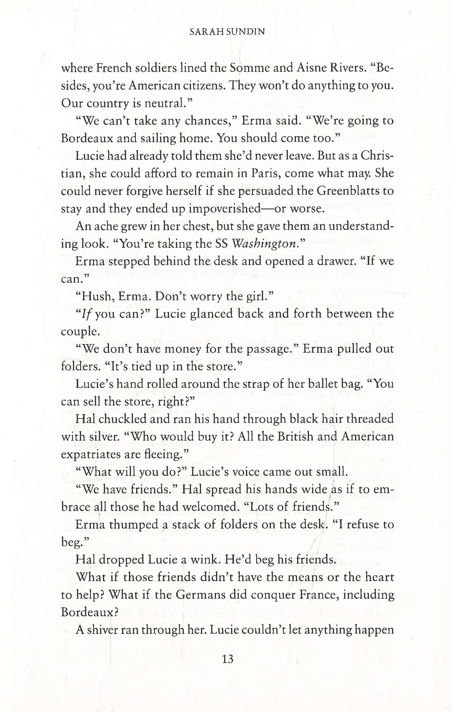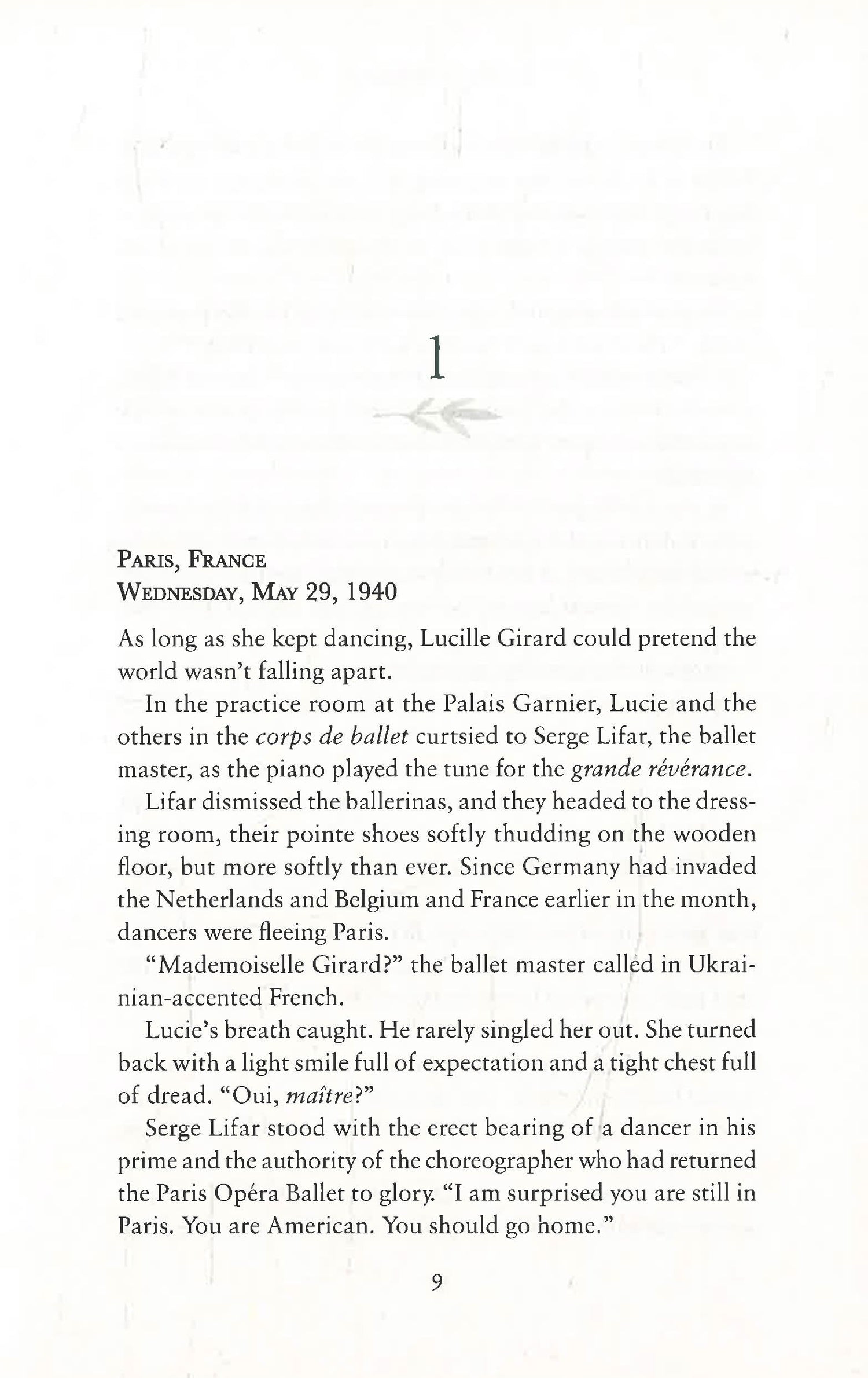 As the Nazis march toward Paris in 1940, American ballerina Lucie Girard buys her favorite English-language bookstore to allow the Jewish owners to escape. Lucie struggles to run Green Leaf Books due to oppressive German laws and harsh conditions, but she finds a way to aid the resistance by passing secret messages between the pages of her books.
