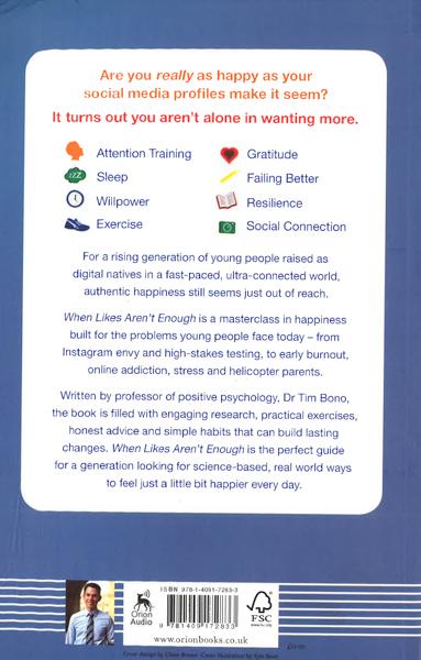 Are you as truly happy as your social media profiles? Are you as truly happy as your social media profiles?For a rising generation of young people raised as digital natives in a fast-paced, ultra-connected world, authentic happiness still seems just out of reach. When Likes Aren't Enough is a masterclass in happiness built for the problems young people face today - from Instagram envy and high-stakes testing, to early burnout, online addiction, stress, and helicopter parents. Written by professor of positive psychology, Dr Tim Bono, the book is filled with engaging research, practical exercises, honest advice and simple habits that can build lasting changes. When Likes Aren't Enough is the perfect guide for a generation looking for science-based, real world ways to feel just a little bit happier every day.