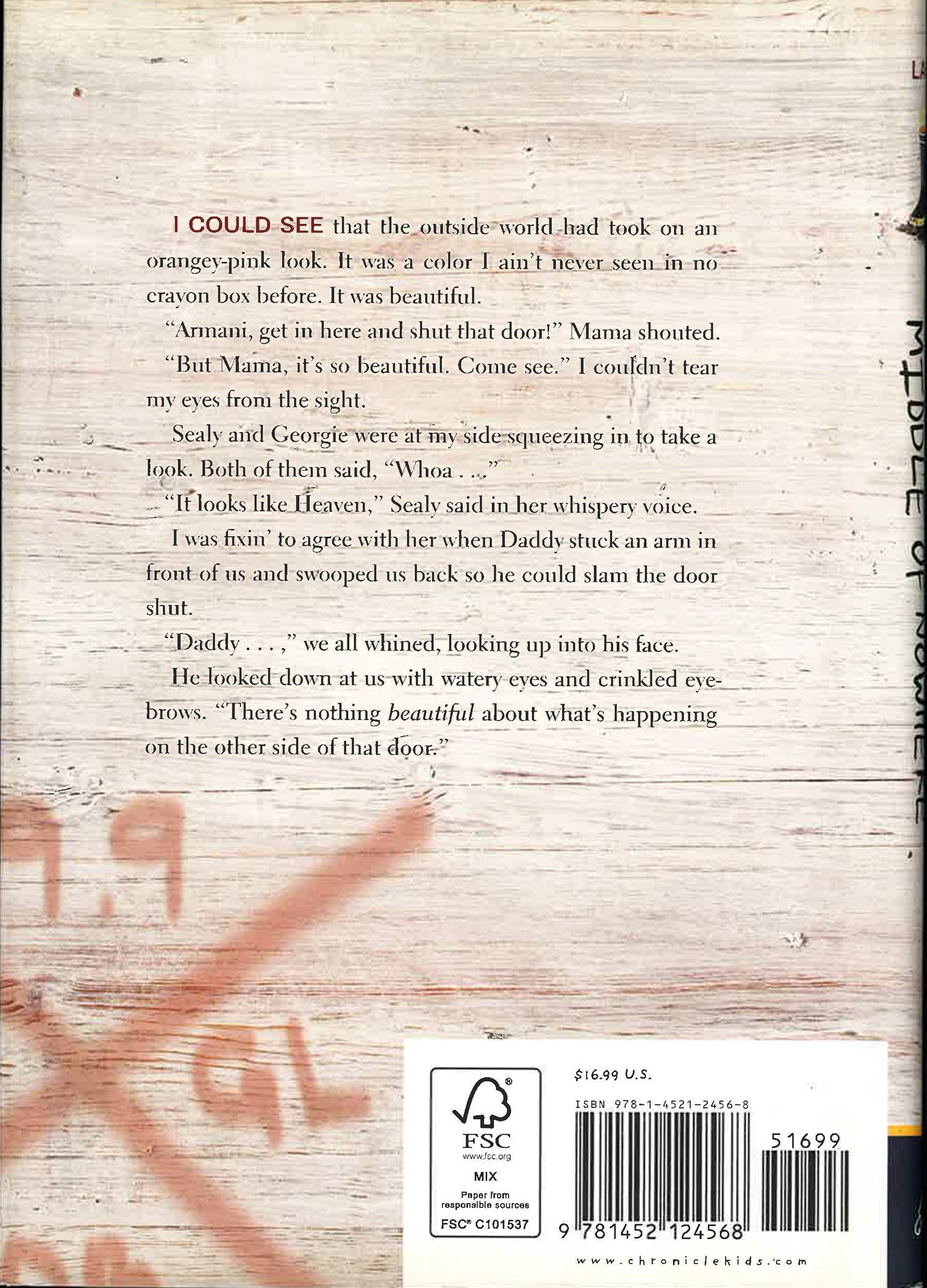 Armani Curtis can think about only one thing: her tenth birthday. All her friends are coming to her party, her mama is making a big cake, and she has a good feeling about a certain wrapped box. Turning ten is a big deal to Armani. It means she's older, wiser, more responsible. But when Hurricane Katrina hits the Lower Nines of New Orleans, Armani realizes that being ten means being brave, watching loved ones die, and mustering all her strength to help her family weather the storm. A powerful story of courage and survival, Upside Down in the Middle of Nowhere celebrates the miraculous power of hope and love in the face of the unthinkable.