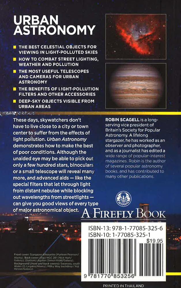These days, skywatchers don't have to live close to a city or town center to suffer from the effects of light pollution. Urban Astronomy demonstrates how to make the best of poor conditions. Although the unaided eye may be able to pick out only a few hundred stars, binoculars or a small telescope will reveal many more, and advanced aids - like the special filters that let through light from distant nebulae while blocking out wavelengths from streetlights - can give you good views of every type of major astronomical object.