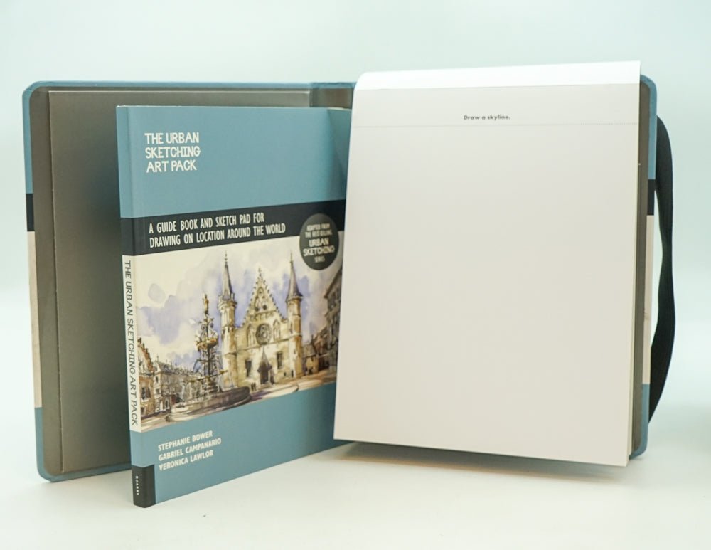 The Urban Sketching Art Pack is a portable package that includes an informational book and companion sketchpad filled with prompts for sketching on the go. The Urban Sketching Handbook series is now in a new format! This portable version of the art package includes a 112-page informational book and a 112-page companion sketchpad full of challenges to get you started on sketching urban environments. The Urban Sketching Art Pack tackles the specific challenges of making sketches on location. You’ll find out the best ways to sketch rain or shine, quickly or slowly. Learn how to frame your scene, create a strong composition, and add detail and interest. Find out how to draw figures in motion, in proportion, and how to capture a person's features. As you advance through the lessons, you'll come to understand the anatomy of a good sketch by learning the secrets to how to draw in perspective. Best of all, you'll learn how to maximize your location drawing opportunities by developing your eye for sketch-worthy events and learning to immerse yourself in the sights and sounds of your fascinating city.
