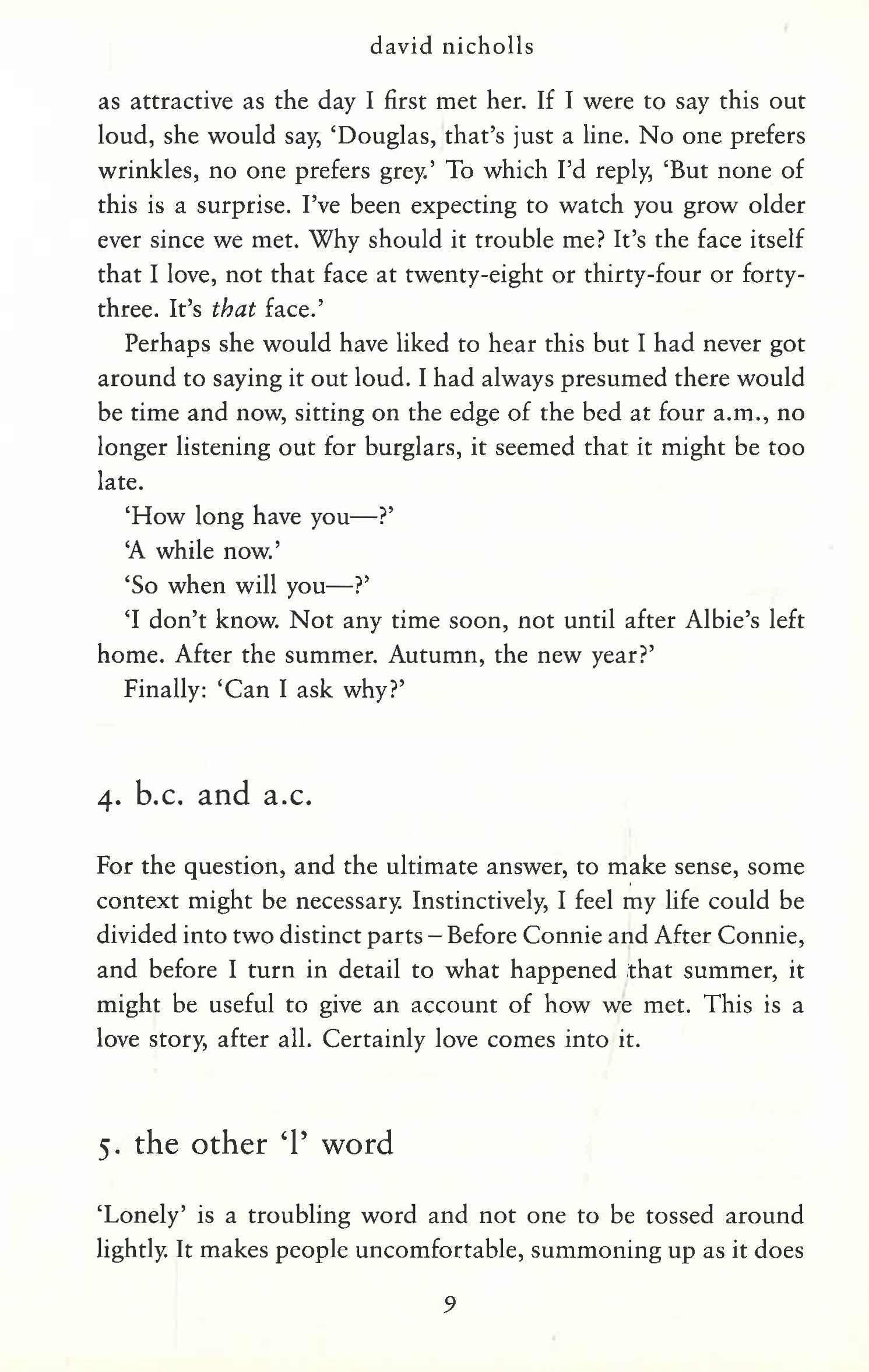 David Nicholls brings the wit and intelligence that graced his enormously popular New York Times bestseller, One Day, to a compellingly human, deftly funny new novel about what holds marriages and families together--and what happens, and what we learn about ourselves, when everything threatens to fall apart. Douglas Petersen may be mild-mannered, but behind his reserve lies a sense of humor that, against all odds, seduces beautiful Connie into a second date . . . and eventually into marriage. Now, almost three decades after their relationship first blossomed in London, they live more or less happily in the suburbs with their moody seventeen year-old son, Albie. Then Connie tells him she thinks she wants a divorce. The timing couldn't be worse. Hoping to encourage her son's artistic interests, Connie has planned a month-long tour of European capitals, a chance to experience the world's greatest works of art as a family, and she can't bring herself to cancel. And maybe going ahead with the original plan is for the best anyway? Douglas is privately convinced that this landmark trip will rekindle the romance in the marriage, and might even help him to bond with Albie. Narrated from Douglas's endearingly honest, slyly witty, and at times achingly optimistic point of view, Us is the story of a man trying to rescue his relationship with the woman he loves, and learning how to get closer to a son who's always felt like a stranger. Us is a moving meditation on the demands of marriage and parenthood, the regrets of abandoning youth for middle age, and the intricate relationship between the heart and the head. And in David Nicholls's gifted hands, Douglas's odyssey brings Europe--from the streets of Amsterdam to the famed museums of Paris, from the cafes of Venice to the beaches of Barcelona--to vivid life just as he experiences a powerful awakening of his own. Will this summer be his last as a husband, or the moment when he turns his marriage, and maybe even his whole life, around? * This book may have reminder mark*