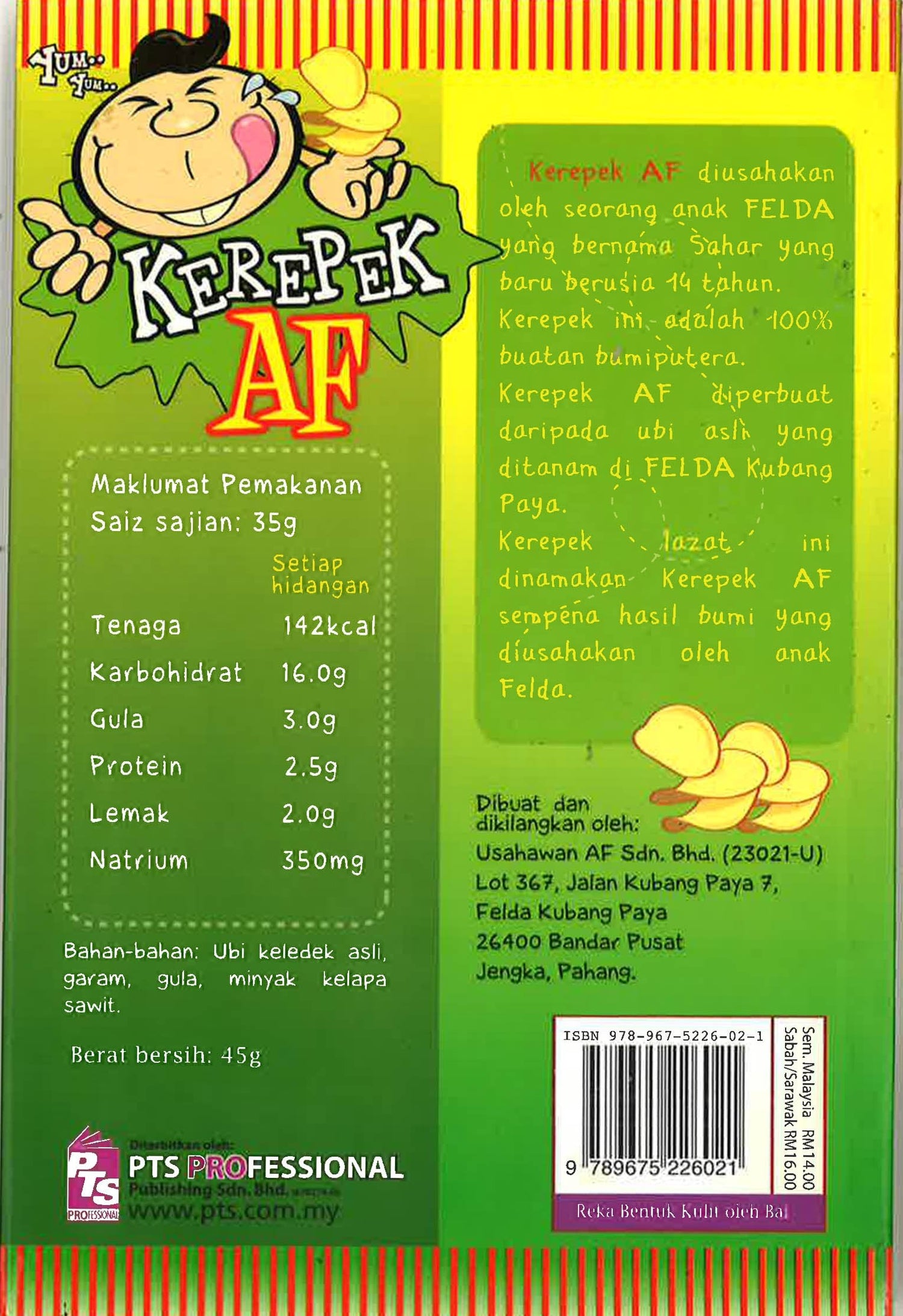 Kerepek AF diusahakan oleh seorang anak FELDA yang bernama Sahar yang baru berusia 14 tahun. Kerepek ini adalah 100% buatan bumiputera. Kerepek AF diperbuat daripada ubi asli yang ditanam FELDA Kubang Paya. Kerepek lazat ini dinamakan Kerepek AF sempena hasil bumi yang diusahakan oleh anak FELDA.