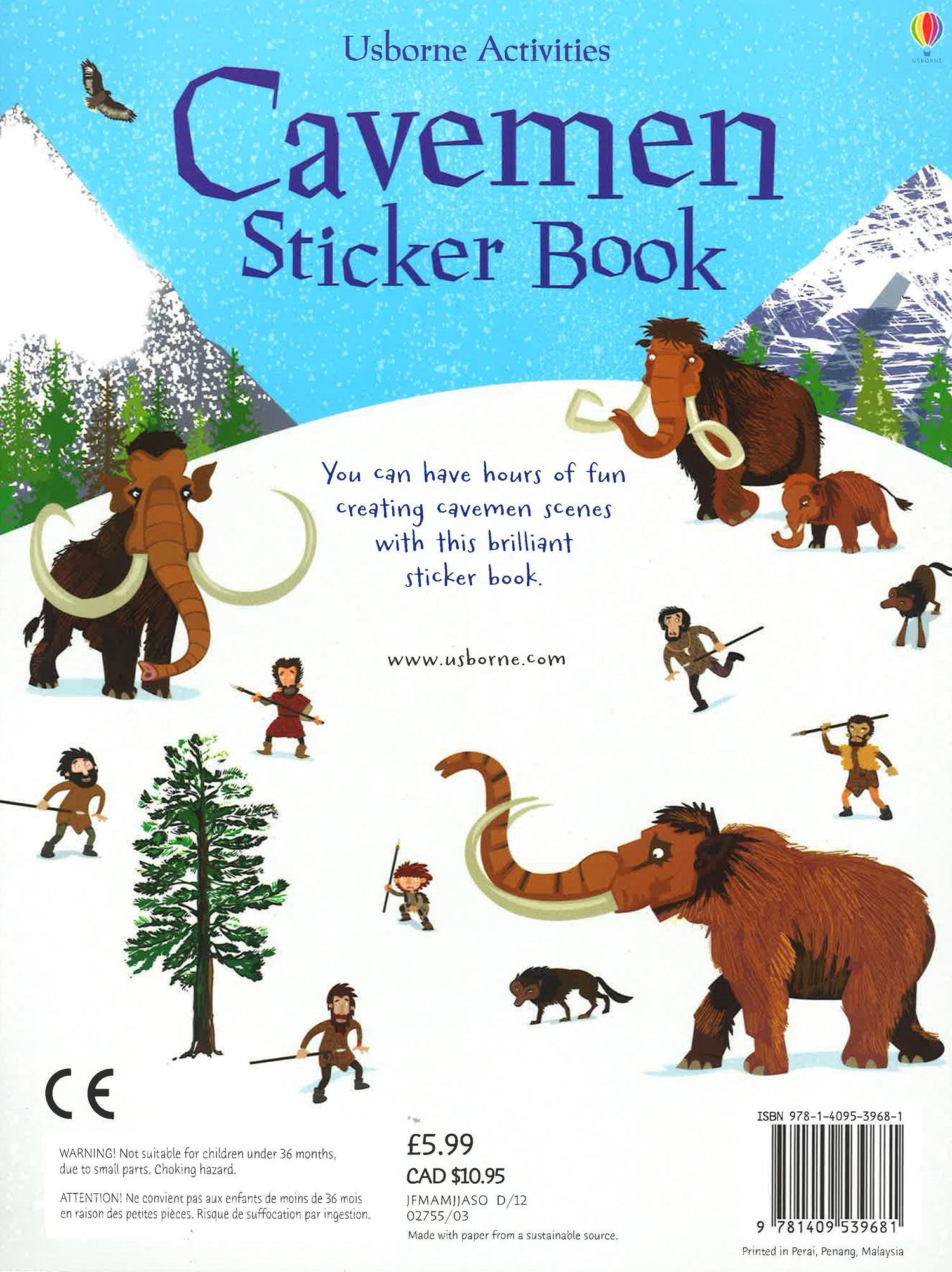 This is a quirky addition to the sticker book series, filled with cavemen scenes to complete with stickers. It contains factual information about cavemen and how they lived, presented in both a fun, but educational way. It lets you complete scenes of cavemen on a mammoth hunt, decorate a cave with cave art, discover how they made their clothes and what they ate, plus lots, lots more.