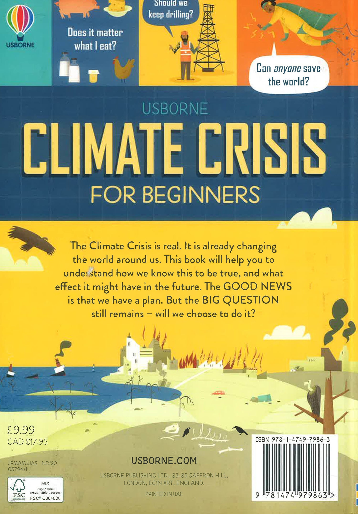 This book explains, in simple language and with clear illustrations, what the climate is, and how it is changing very rapidly at the moment, and the effects this is having on our planet. It tackles suggestions about what needs to change in the way people live, from power stations to farming, and explains why it's so difficult to do.