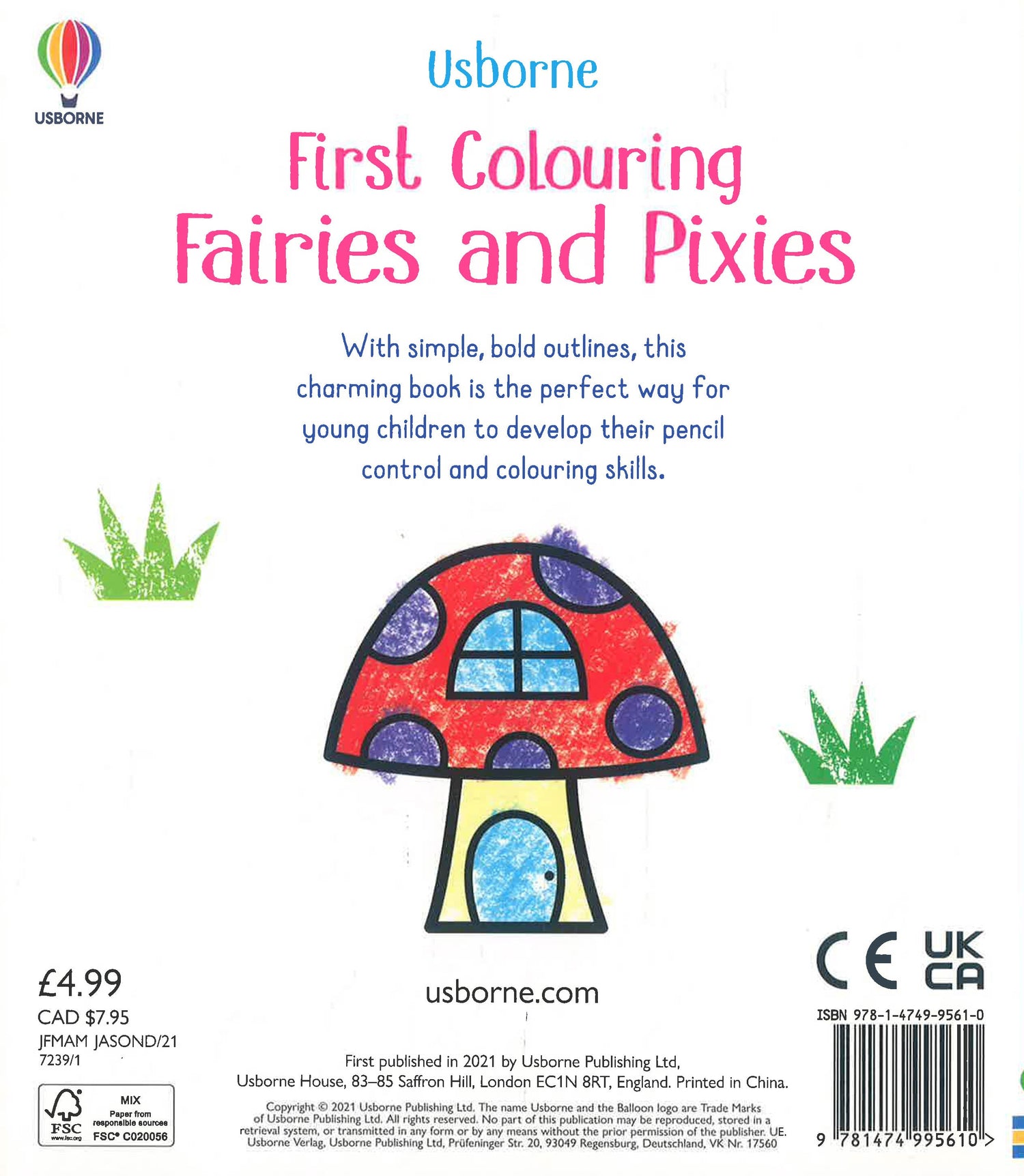All kinds of fairies and pixies flutter through the pages of this delightful early years colouring book. Little children will love the magical illustrations, and the bold, simple outlines make this book ideal for developing pencil control skills.