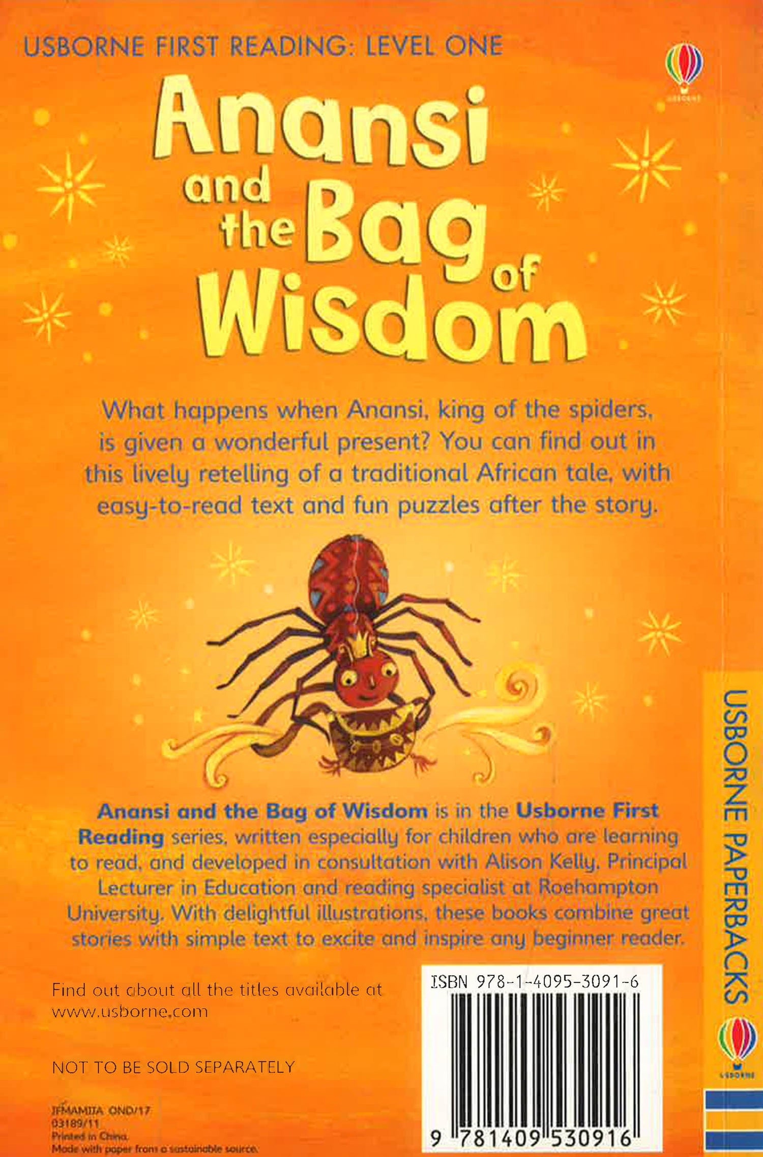 This is a new title in the fantastic "First Reading" series, based on an African folktale and part of the "Usborne Reading Programme". It is aimed at children who are beginning to read. Anansi, King of the Spiders, is given a bag of wisdom to share but selfishly decides to keep it for himself. But can he carry it up to his secret hiding place without dropping it? It is developed in consultation with Alison Kelly, who is Principal Lecturer in Education from Roehampton University and an early reading specialist. Every title in this series features clear and compelling text accompanied by charming and highly appealing illustrations. Designed to motivate children as they learn to read.