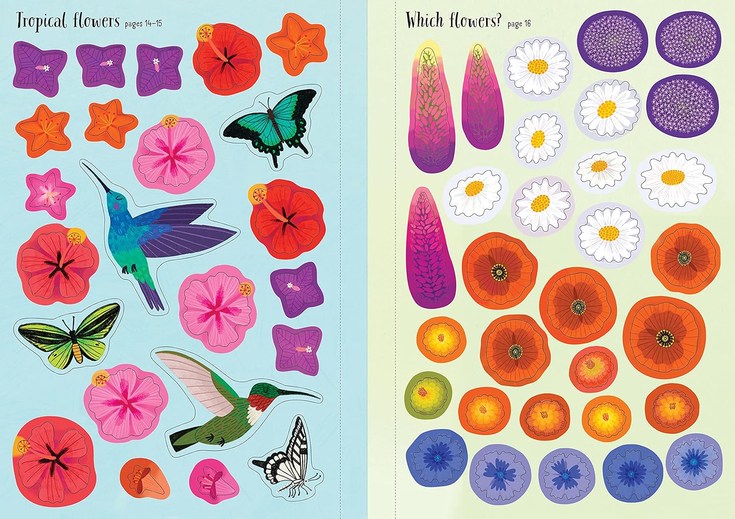 This charming book is just waiting to be filled with beautiful flower stickers. It includes colourful scenes of all kinds of gorgeous meadows, woodlands and gardens, all brimming with birds, bees, bugs and butterflies. With labels for the stickers, there's lots to learn and talk about.