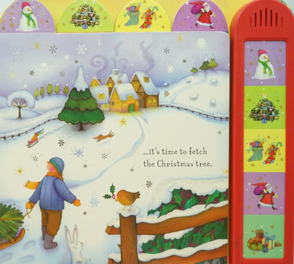 This lovely big board book is perfect for sharing with small children, at Christmas. It contains five beautiful festive scenes including a snowy landscape, a tree being decorated, and Santa soaring through the night sky. Very little children will have great fun pressing the buttons for the Christmas tunes including, "Deck the Halls with Boughs of Holly", "The Holly and the Ivy", "Silent Night", "Jingle Bells", and, "We Wish You a Merry Christmas". It is illustrated with cosy, colourful pictures by Anna Luraschi (Illustrator of "The Nutcracker"). Strong tabs allow scenes to be located quickly and easily, while making the book look and feel more luxurious.