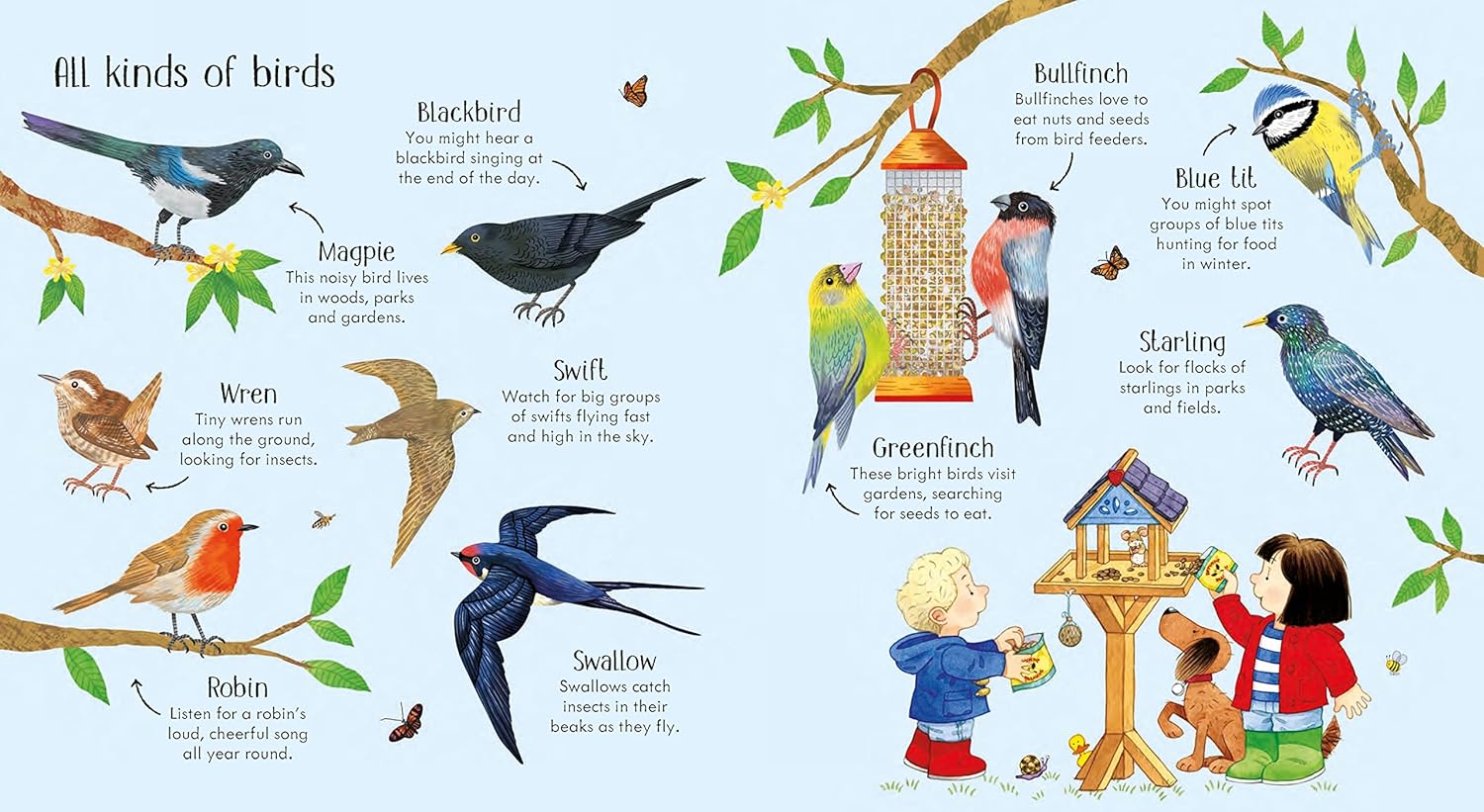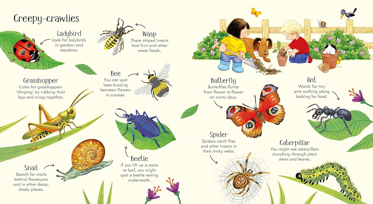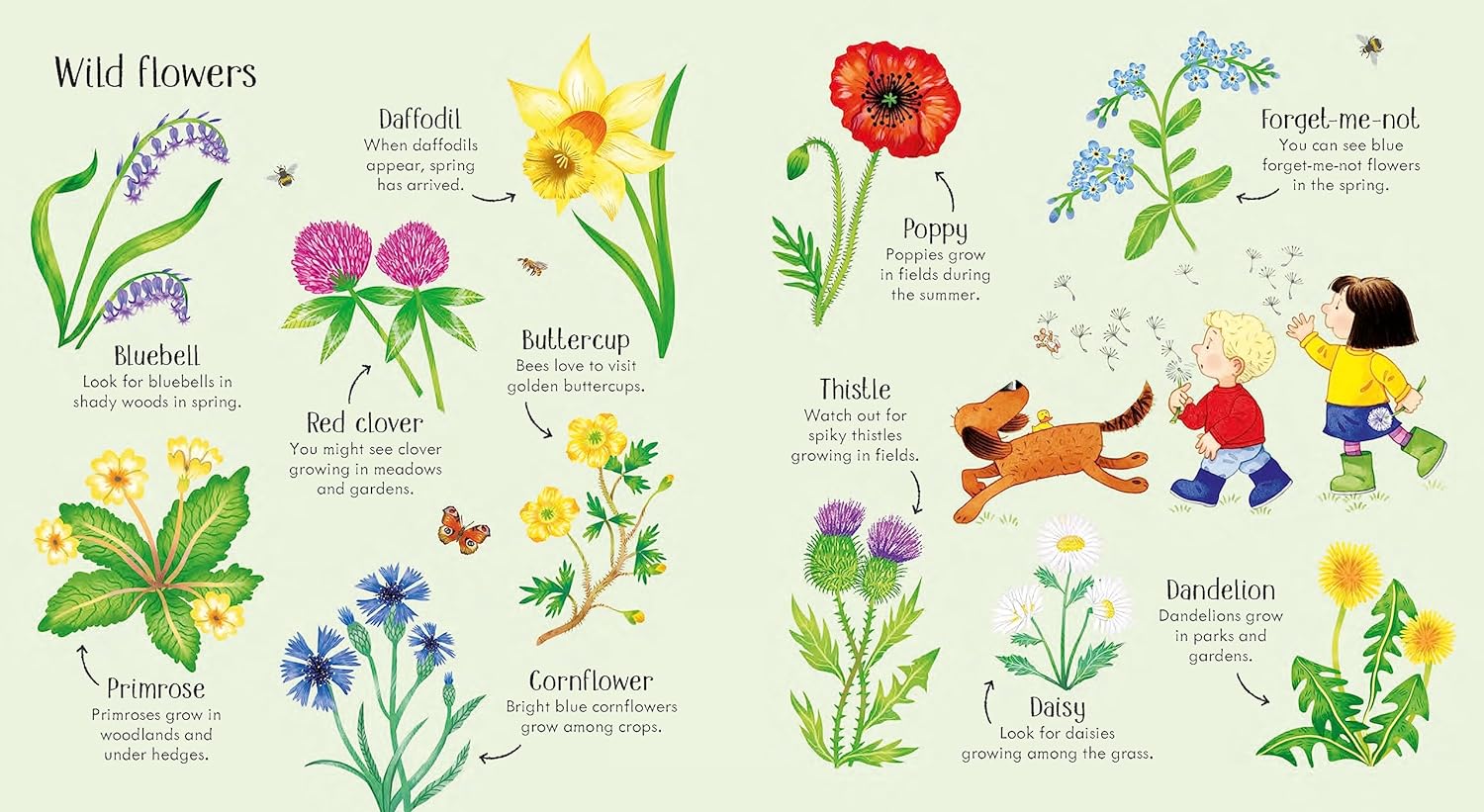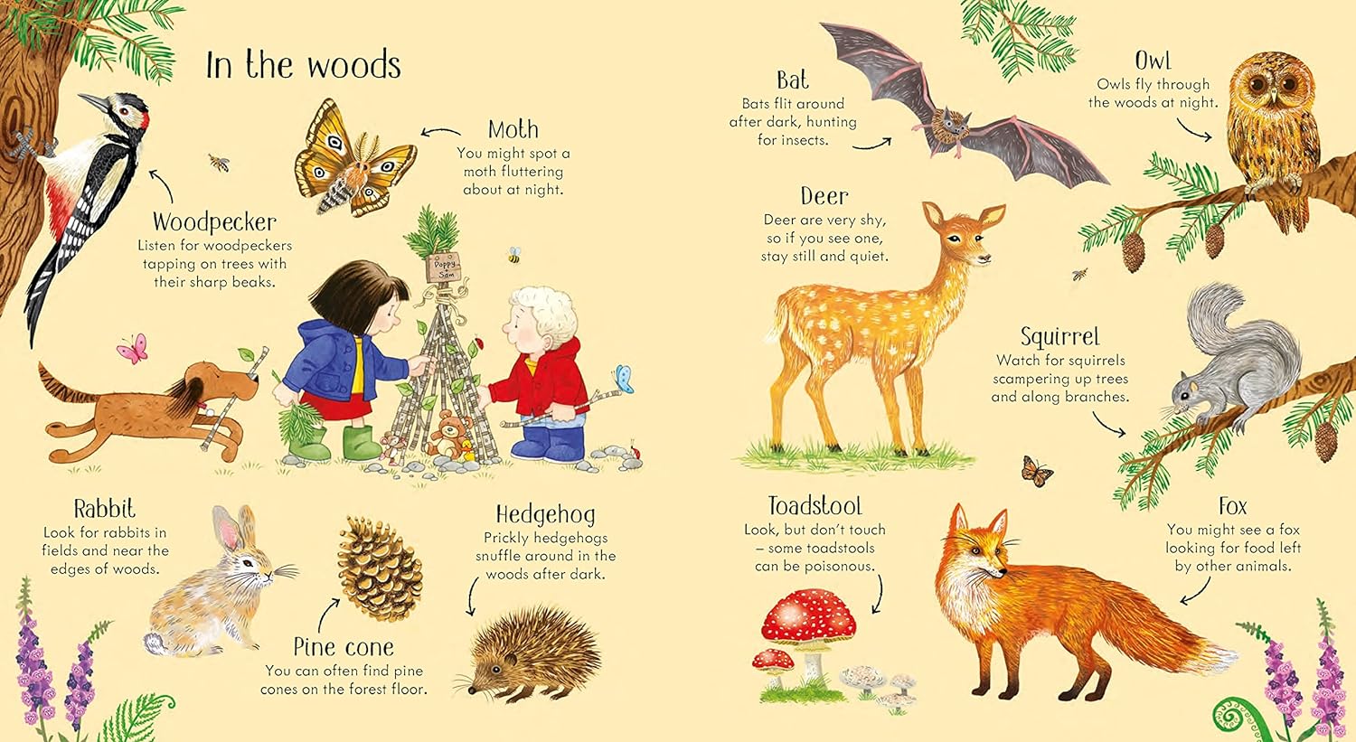 Each page of this beautifully illustrated book is filled with things to spot in nature. From birds and bugs to flowers and trees, Poppy and Sam take the readers on a journey through different locations and the things they might find there. Every detailed little picture has a label giving some information, making it a perfect way for little children to start learning about the natural world around them.