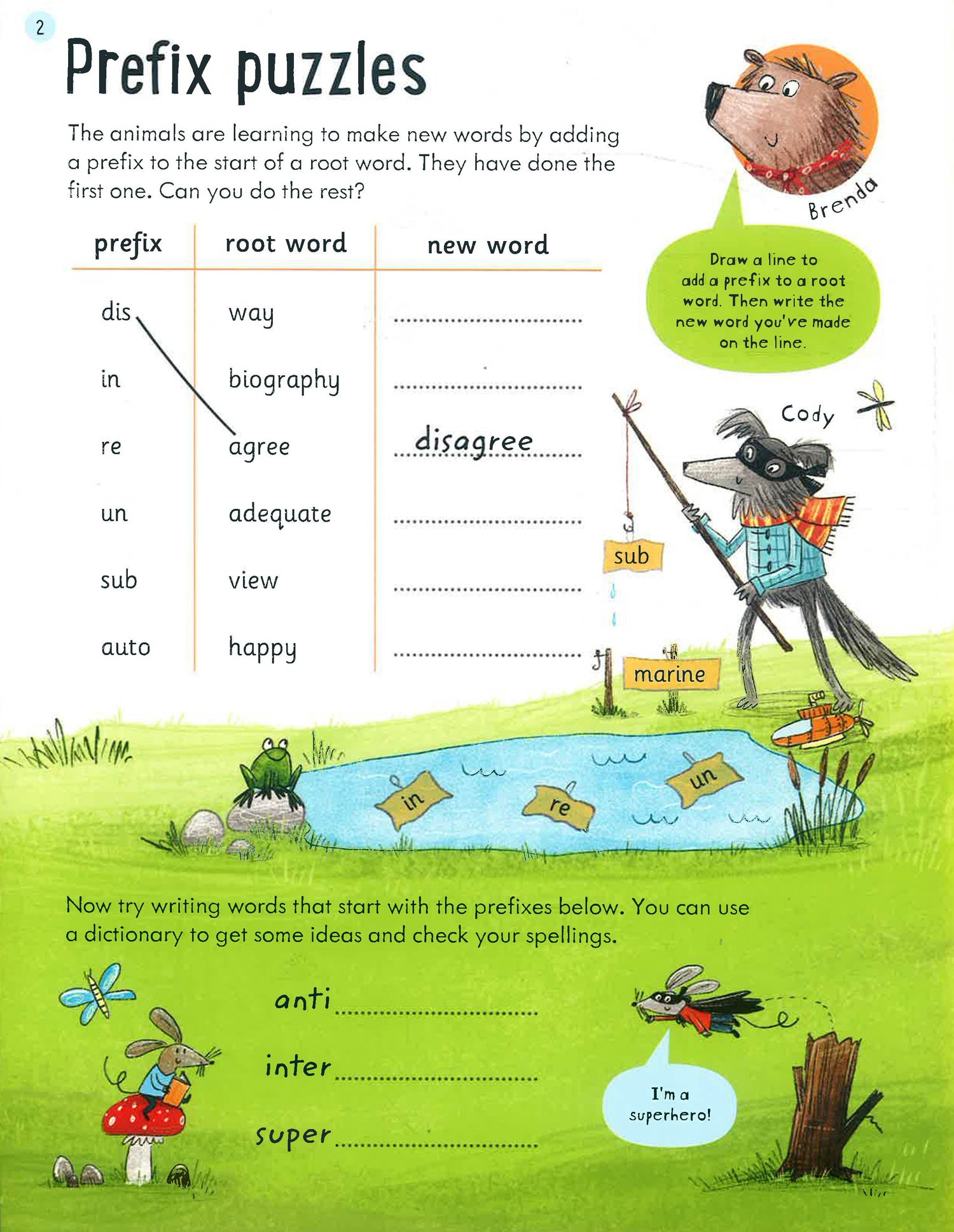 Part of the Usborne Key Skills series that supports the English lessons children learn at school, this entertaining book is filled with prefix and suffix related activities, including giving words opposite meanings, adding word endings and using apostrophes.