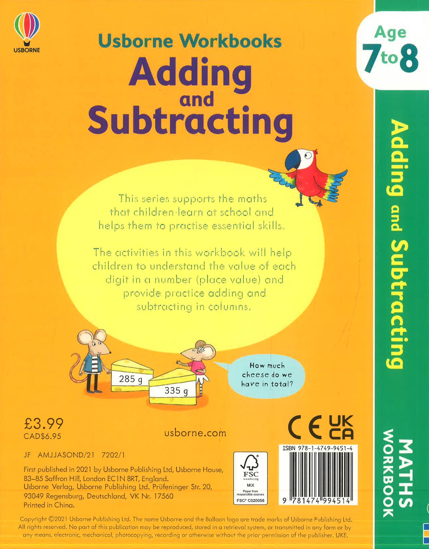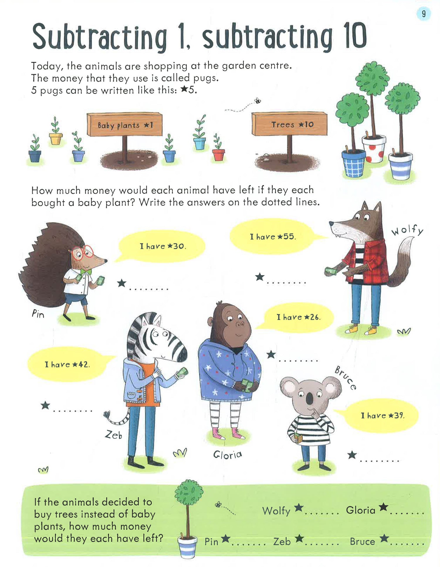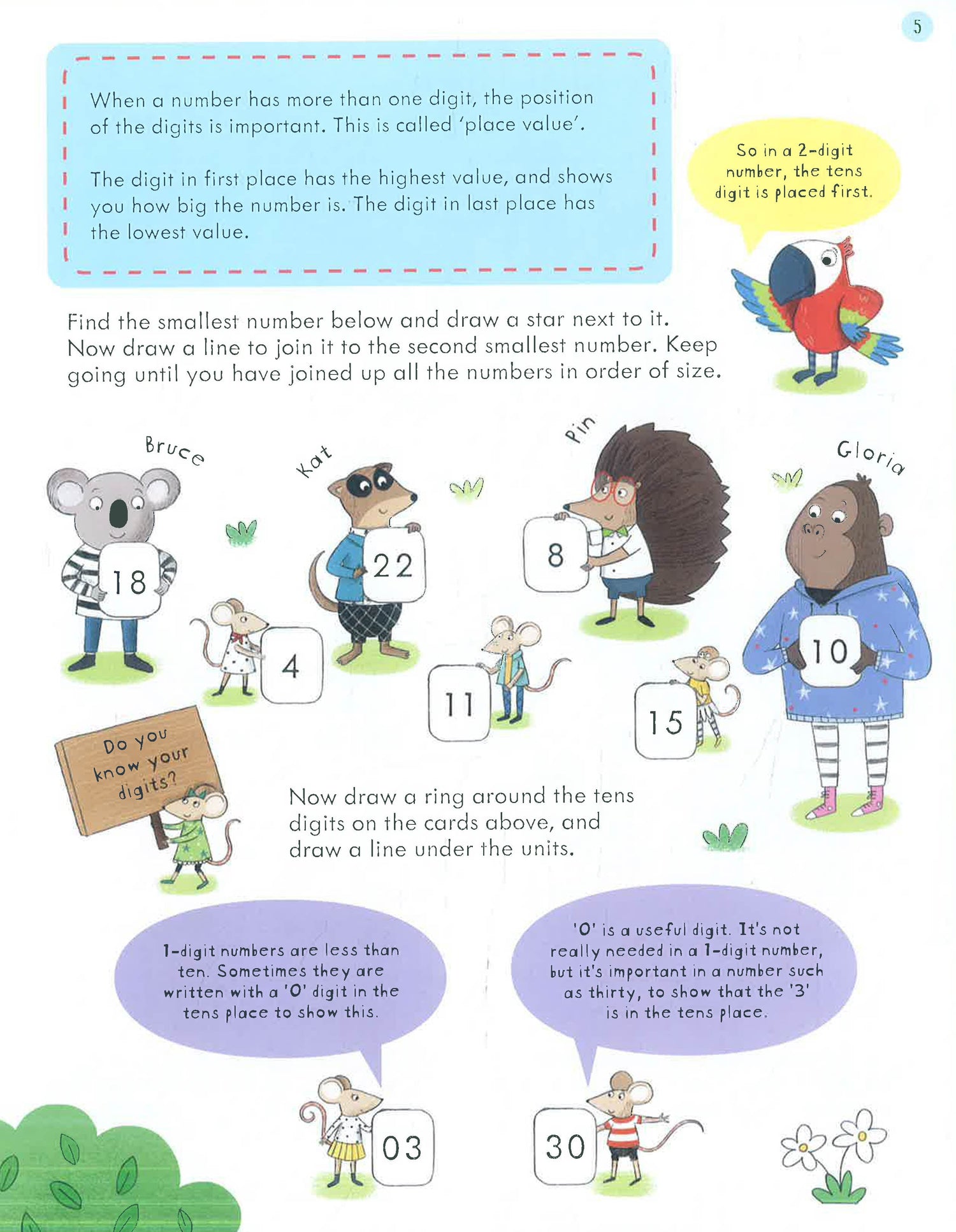 The friendly animal characters in this fun workbook will help children understand the value of each digit in a number (place value) and provide practice in adding and subtracting 2-digit and 3-digit numbers in columns.