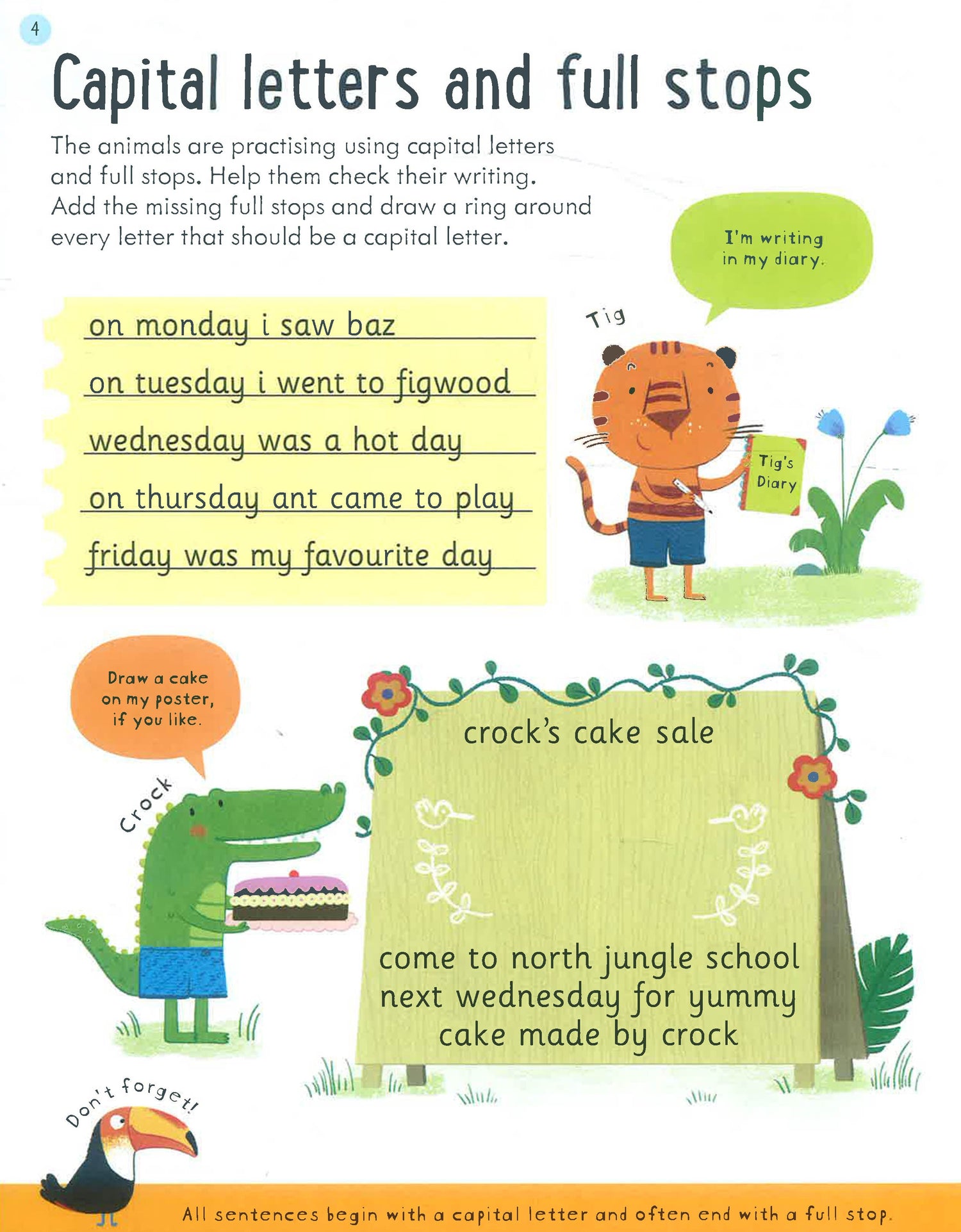 With the help of Beaky the toucan and his jungle friends, children can explore the rules of written English. The activities in this book build confidence in using punctuation, understanding tenses, and identifying nouns, verbs, adverbs and adjectives.