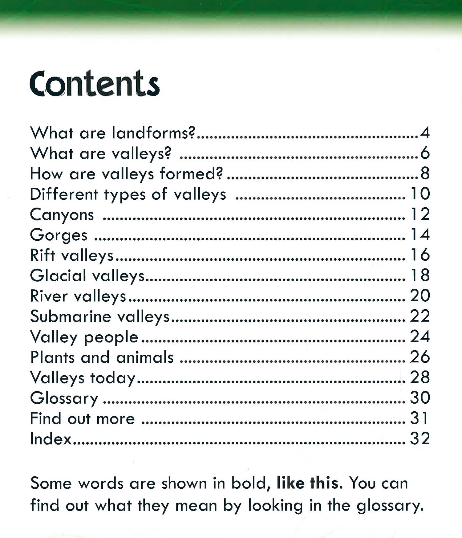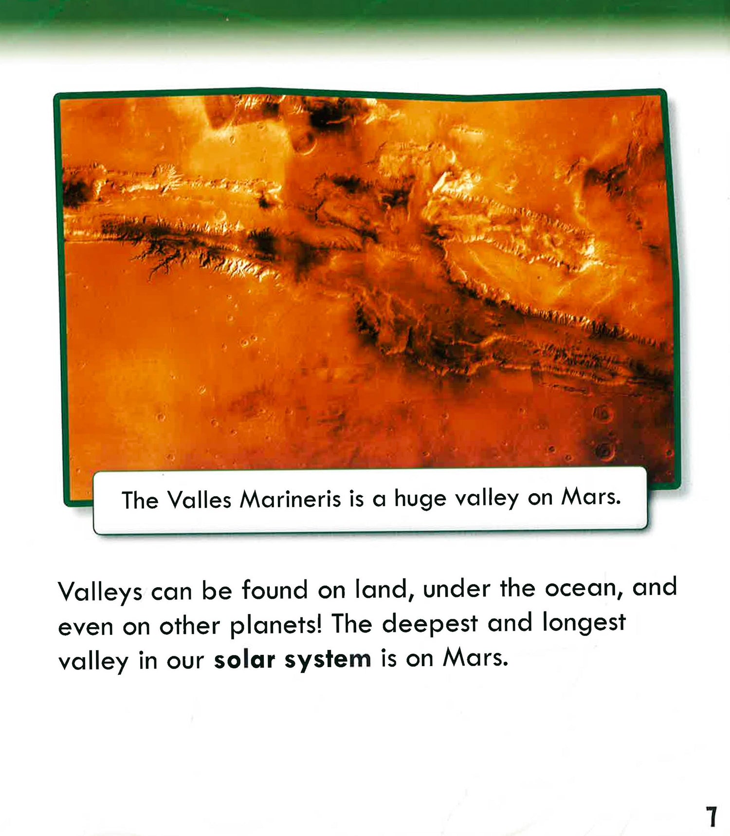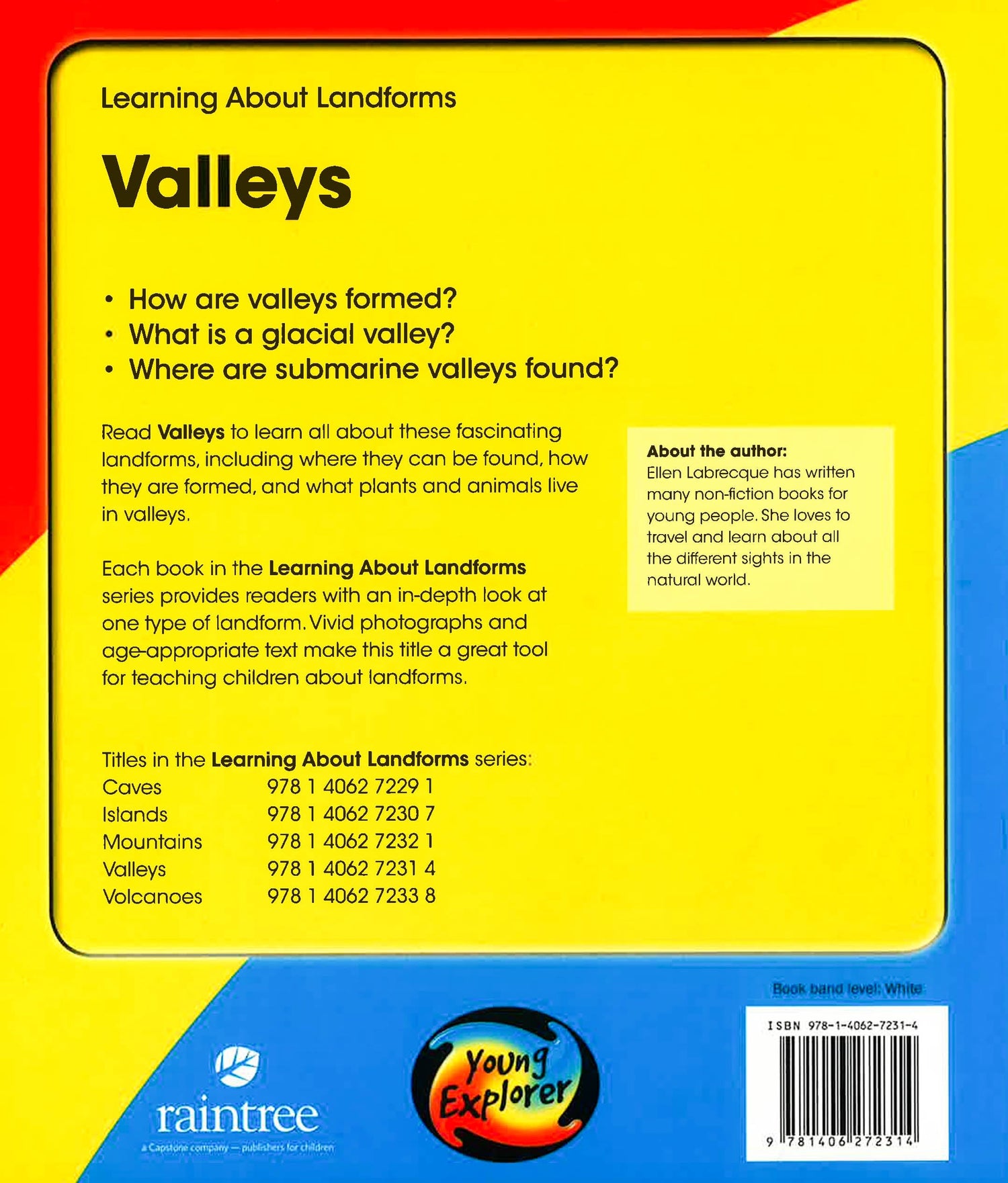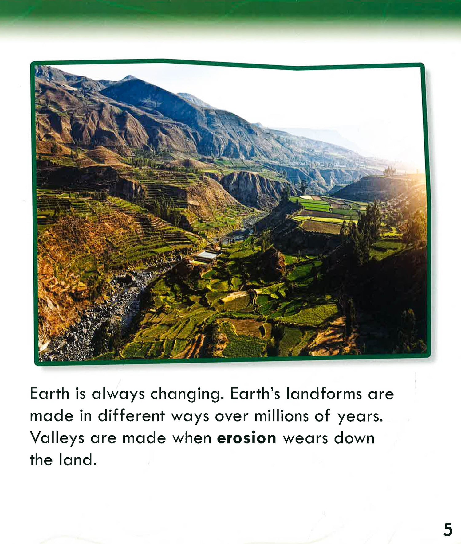 Read Valleys to learn all about these exciting, beautiful, and unique landforms. Discover the different valley types, how valleys are formed, and what living things can be found in and around valleys.