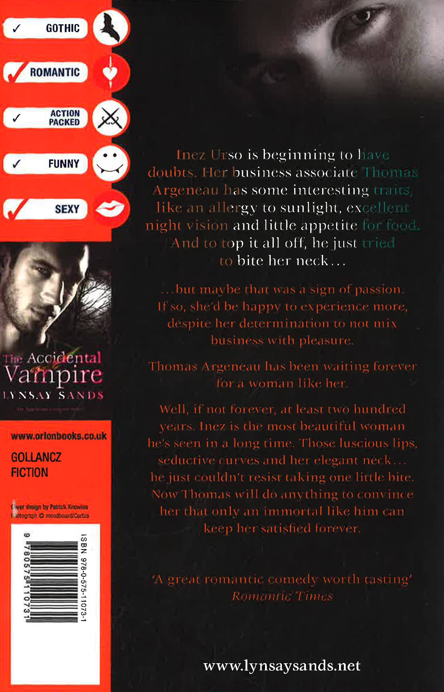 Inez Urso is beginning to have her doubts. Her business associate Thomas Argeneau has some interesting traits, like an allergic reaction to the sun, excellent night vision, and not much of an appetite for food. And to top it all off, he just tried to bite her neck ... but maybe that was a sign of passion. If so, she'd be happy to experience more, despite her determination not to mix business with pleasure.