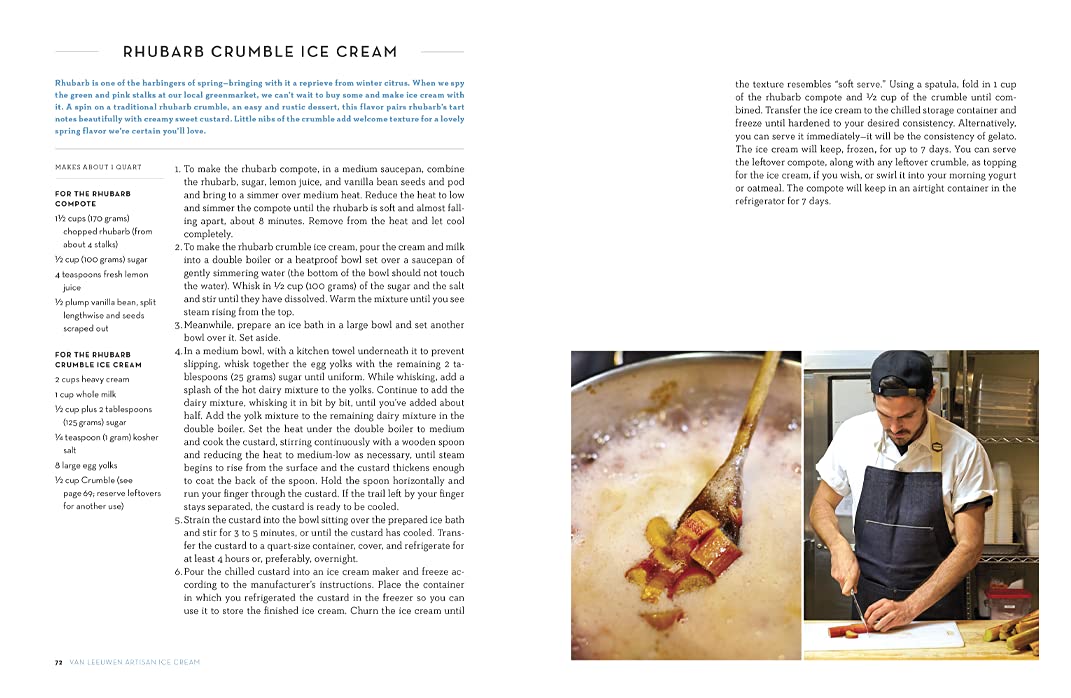 The Van Leeuwen Artisan Ice Cream Book includes ice cream recipes for every palate and season, from beloved favorites like Vanilla to adventurous treats inspired by a host of international culinary influences, such as Masala Chai with Black Peppercorns and Apple Crumble with Calvados and Crème Fraîche. Each recipe—from the classic to the unexpected, from the simple to the advanced—features intense natural flavors, low sugar, and the best ingredients available. They also highlight vegan and non-dairy ice cream techniques.