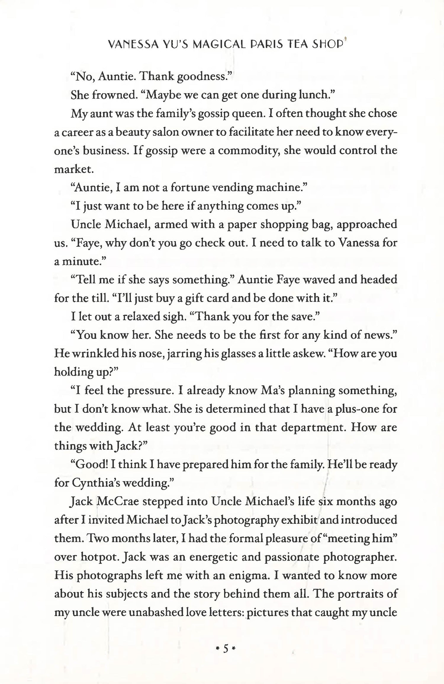 After her matchmaking appointment, Vanessa sees death for the first time. She decides that she can't truly live until she can find a way to get rid of her uncanny abilities. When her eccentric Aunt Evelyn shows up with a tempting offer to whisk her away, Vanessa says au revoir to California and bonjour to Paris. There, Vanessa learns more about herself and the root of her gifts and realizes one thing to be true: knowing one's destiny isn't a curse, but being unable to change it is.