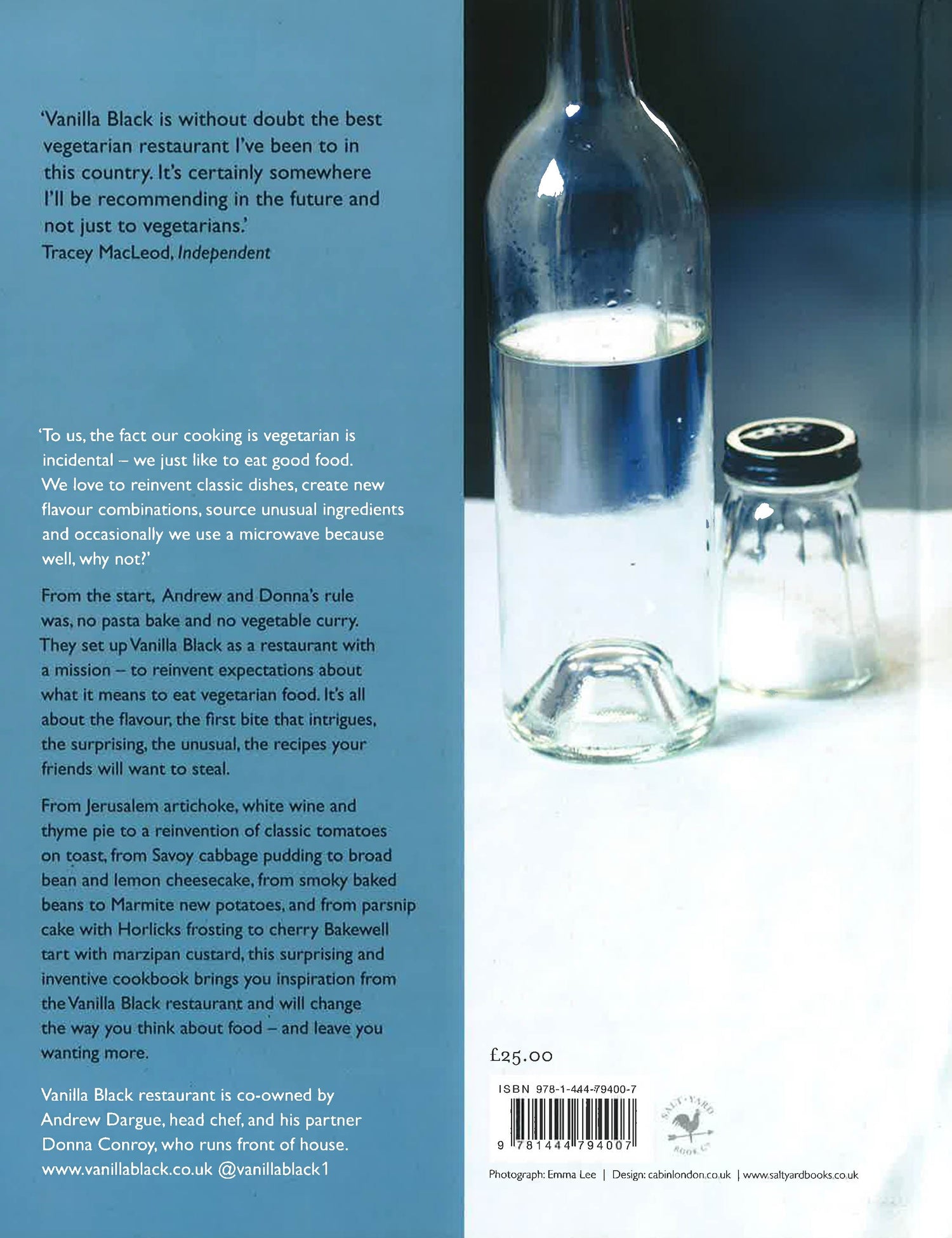 The food is creative, beautifully presented and exciting.' Guardian 'To us, the fact our cooking is vegetarian is incidental - we just like to eat good food. We love to reinvent classic dishes, create new flavour combinations, source unusual ingredients and occasionally we use a microwave because well, why not?' From the start, Andrew and Donna's rule was, no pasta bake and no vegetable curry. They set up Vanilla Black as a restaurant with a mission - to reinvent expectations about what it means to eat vegetarian food. It's all about the flavour, the first bite that intrigues, the surprising, the unusual, the recipes your friends will want to steal. From Jerusalem artichoke, white wine and thyme pie to a reinvention of classic tomatoes on toast, from Savoy cabbage pudding to broad bean and lemon cheesecake, from smoky baked beans to Marmite new potatoes, and from parsnip cake with Horlicks frosting to cherry Bakewell tart with marzipan custard, this surprising and inventive cookbook will change the way you think about food - and leave you wanting more. Vanilla Black restaurant is co-owned by Andrew Dargue, head chef, and his partner Donna Conroy, who runs front of house. www.vanillablack.co.uk @vanillablack1