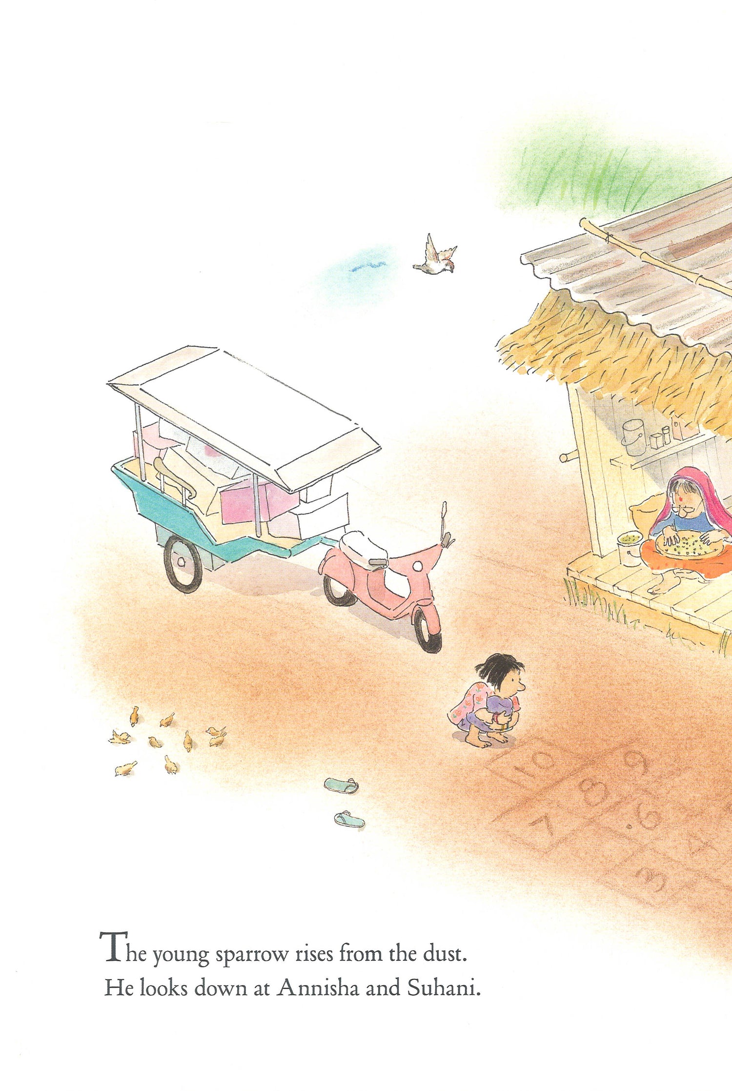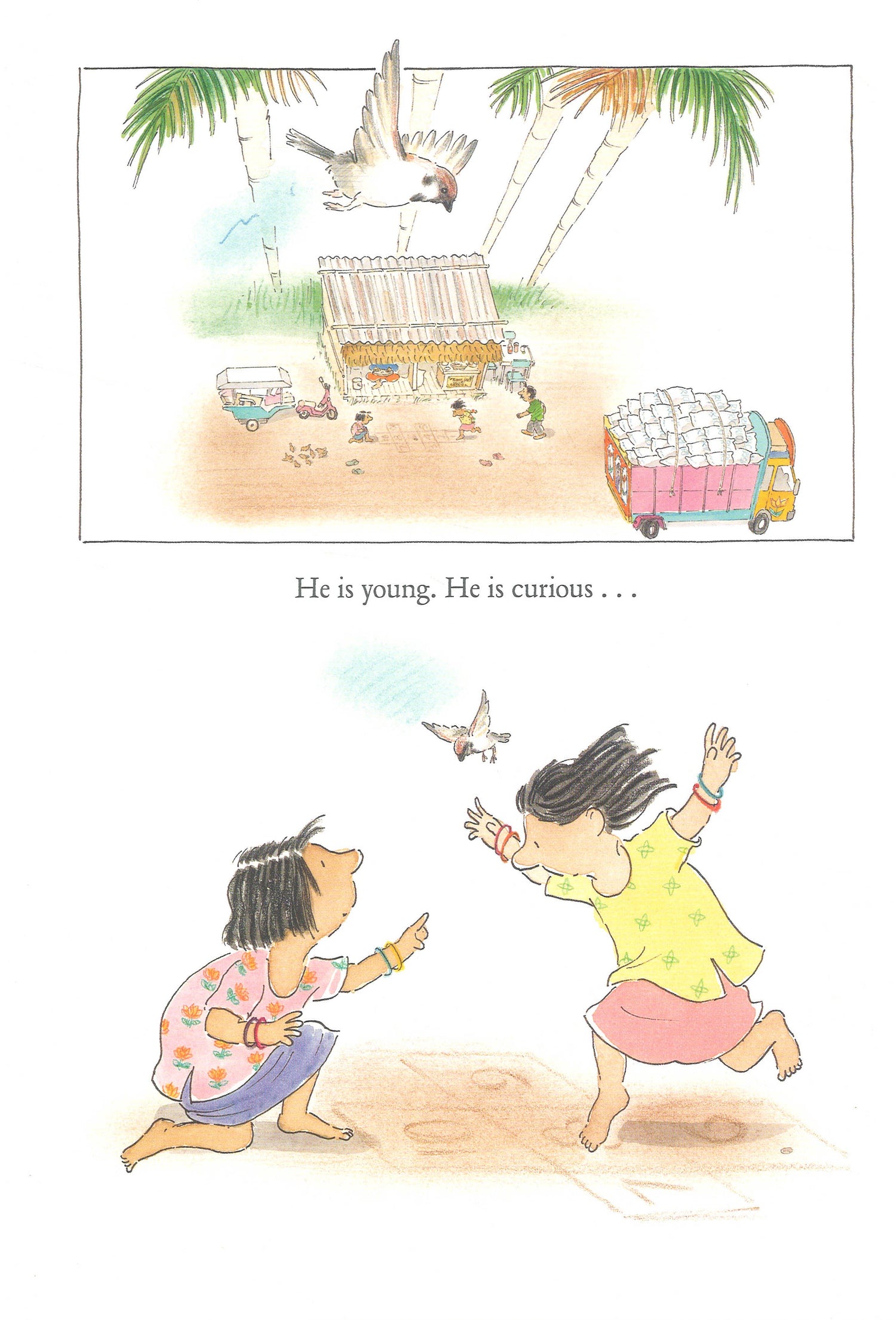 A wild sparrow s journey sets in motion a toddler s new experience in Bob Graham s tale of life s surprising little turns and unlikely connections. Following some food, a curious young sparrow stows away in the back of a truck and takes an unusual voyage south through the lush rice paddies of India, across the rough sea, and all the way into a bright new day. As the sun rises high over the city, he finds little Edie at a cafe with her grandma and granddad, and for a fleeting instant, his world meets up with hers and changes her life in the most delightful way. From the masterful Bob Graham comes an invitation to notice the smallest of moments as they unfold around us, full of unexpected promise.