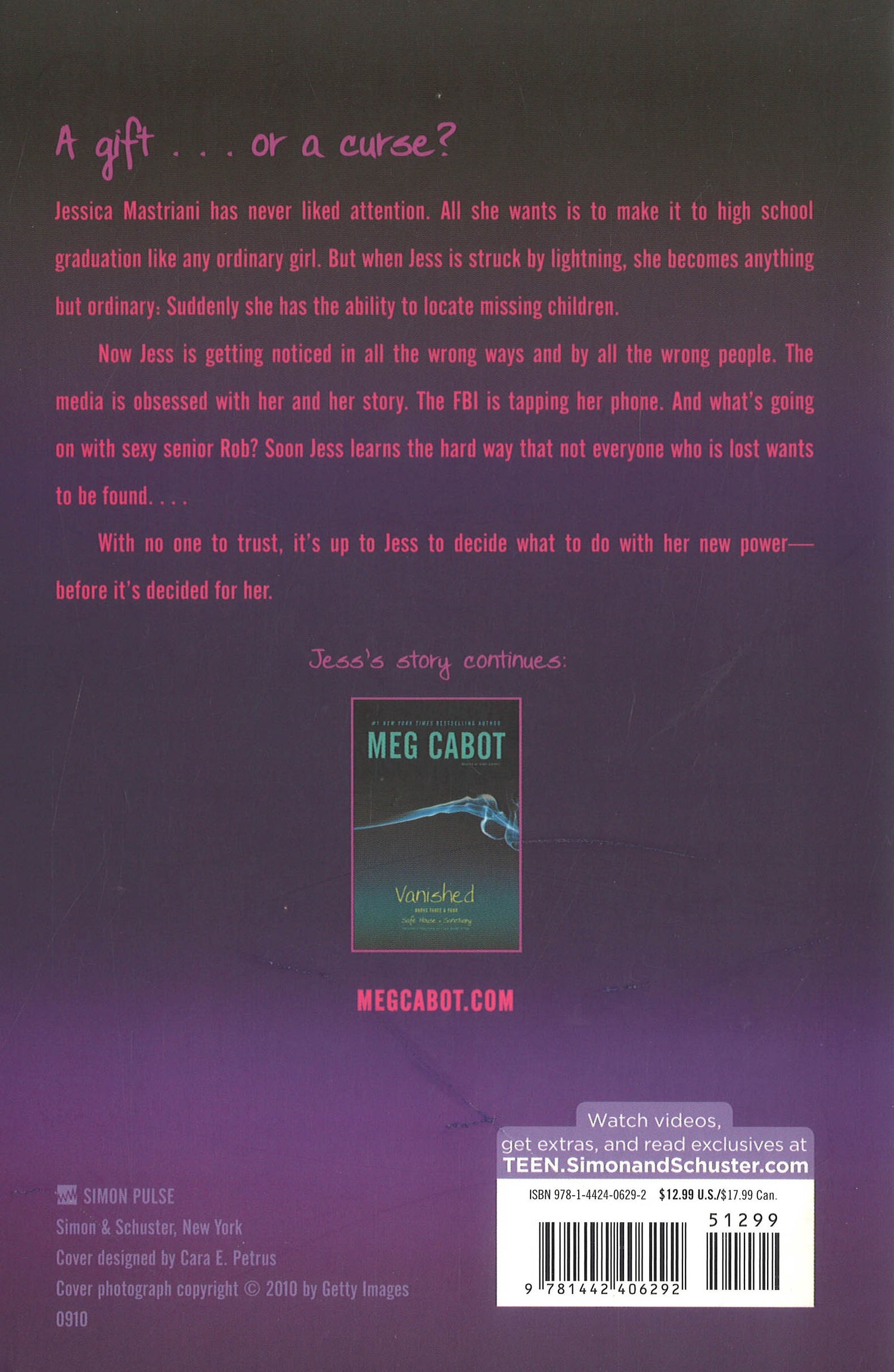 Jessica Mastriani has never liked attention. All she wants is to make it to high school graduation like any ordinary girl. But when Jess is struck by lightning, she becomes anything but ordinary: suddenly she has the ability to locate missing children.
