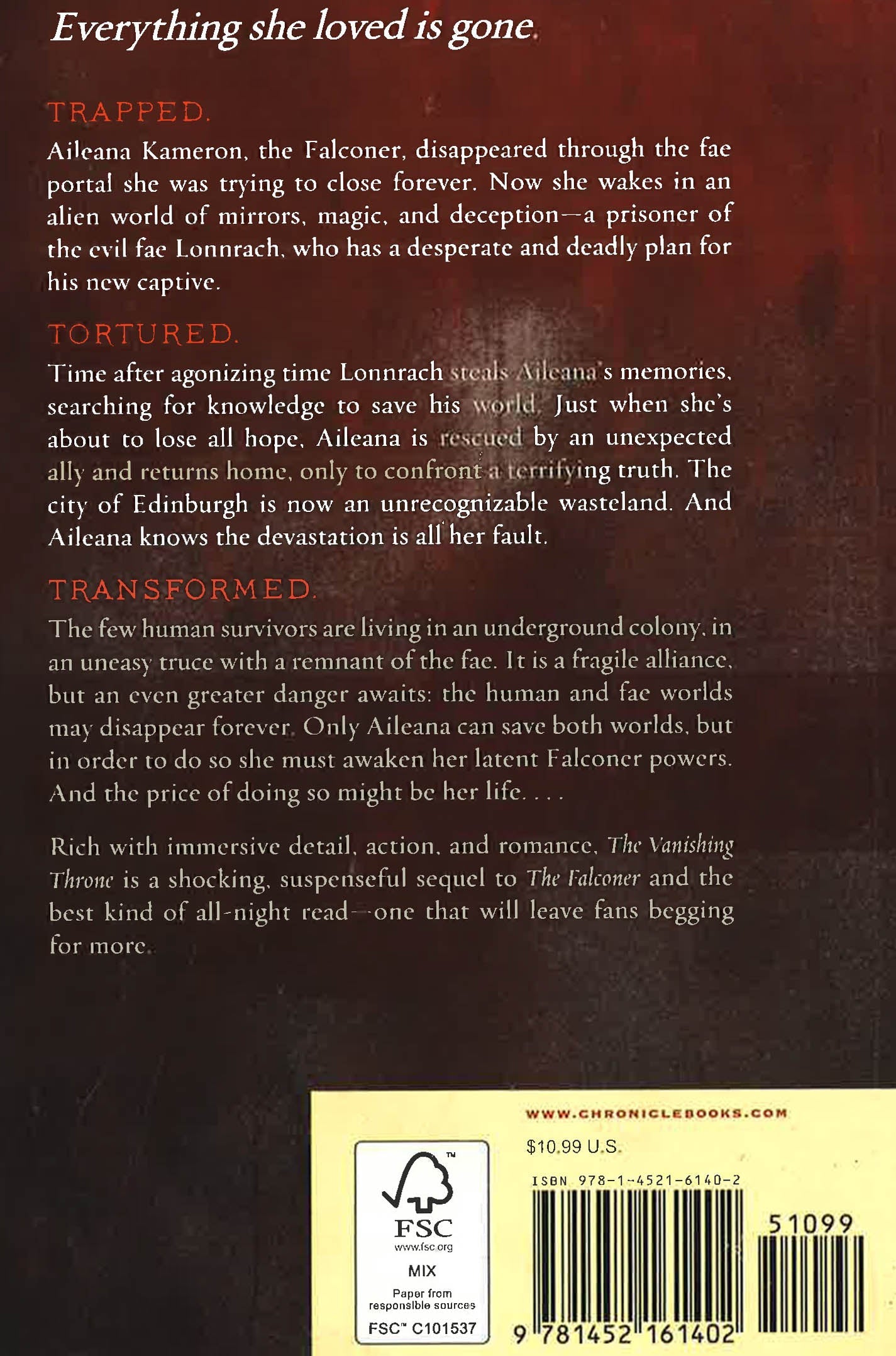 When we last saw her, Aileana Kameron, the Falconer, disappeared through the fae portal that she was trying to close forever. When she escapes and reenters the human world, she finds her beloved city—indeed, the entire world—has been destroyed, and the fae world itself is slowly dying. Somehow Aileana is the key to preserving both worlds—but how?