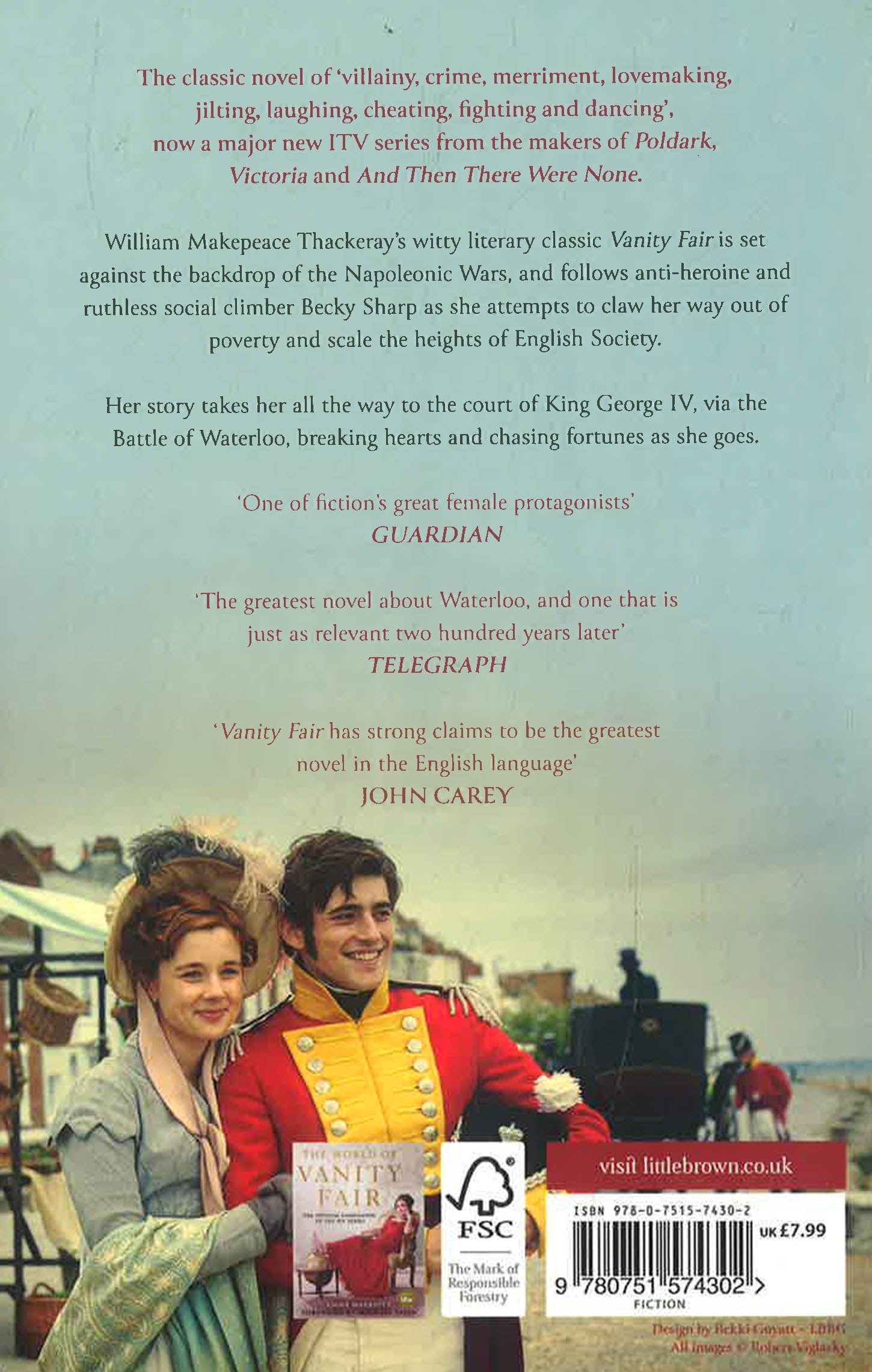 William Makepeace Thackeray's witty literary classic Vanity Fair is set against the backdrop of the Napoleonic Wars, and follows anti-heroine and ruthless social climber Becky Sharp as she attempts to claw her way out of poverty and scale the heights of English Society. Her story takes her all the way to the court of King George IV, via the Battle of Waterloo, breaking heart and fortunes as she goes.