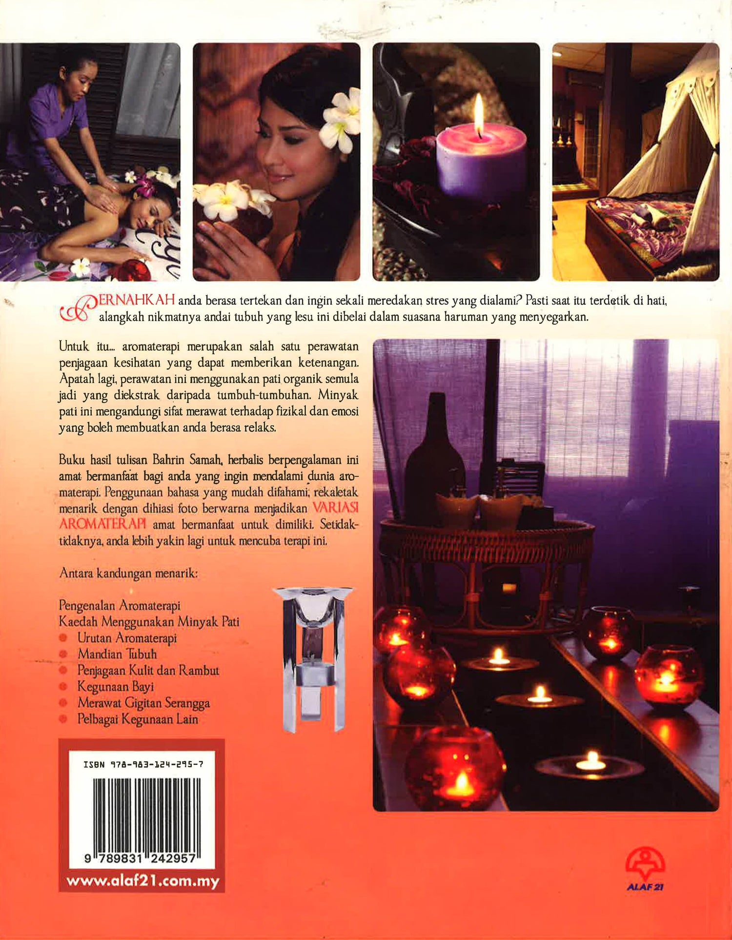 PERNAHKAH anda berasa tertekan dan ingin sekali meredakan stres yang dialami? Pasti saat itu terdetik di hati, alangkah nikmatnya andal tubuh yang lesu ini dibelai dalam suasana haruman yang menyegarkan. Untuk it aromaterapi merupakan salah satu perawatan peragaan kesihatan yang dapat memberikan ketenangan. Apatah lagi perawatan ini menggunakan pati organik semula jadi yang dekstrak daripada tumbuh-tambuhan. Minyak pati ini mengandungi sifat merawat terhadap fizikal dan emosi yang boleh membuatkan anda berasa relaks Baku hail tulian Bahrin Samah herbalis berpengalaman ini ama bermanfan bagt anda yang ingin mendalam dunia aro materapi. Penggunaan bahasa yang mudah difahami, rekaktak ank dengan dihad foto berwarna merjudikan VARIAS AROMATERAT amæ bermanfat utuk dimiliki Setlak tidaknya anda khih yakin lagi urtuk nercuba terapi ini,