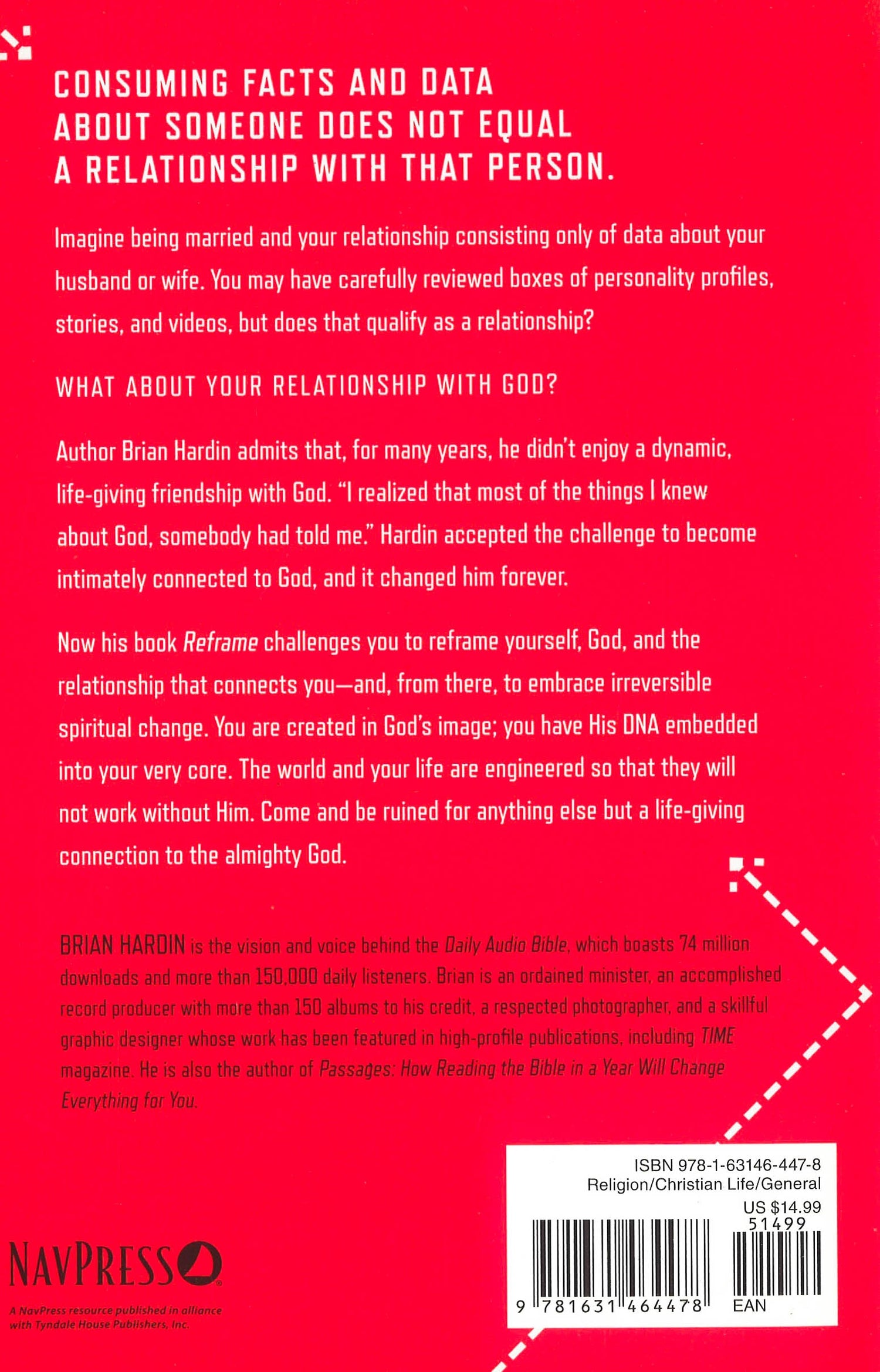 Accomplished recording producer Brian Hardin experienced a mediocre Christian faith until one day, he purposed to read the Bible daily. His resolve led to the start of the Daily Audio Bible, which after eight years has had more than 55 million downloads and feeds hundreds of thousands of listeners each day.In the process of reading the Bible to his growing audience every day without fail, he has made a true, real friend in Jesus. Not a "Hey God, I know You're up there somewhere" type of relationship, but one that contains the emotions, dialogue, and intimate moments that we long for from our closest of comrades. Brian found it necessary to entirely reframe his perception of God into a relationship as real as any experienced here on earth.Reframe challenges you to change your paradigm about your relationship and connection with God, because in truth, you are engineered so that life will not work without Him. Reframe invites you to reconsider life and what it might look like if you were ruined for anything else but a life-giving connection to the almighty God.