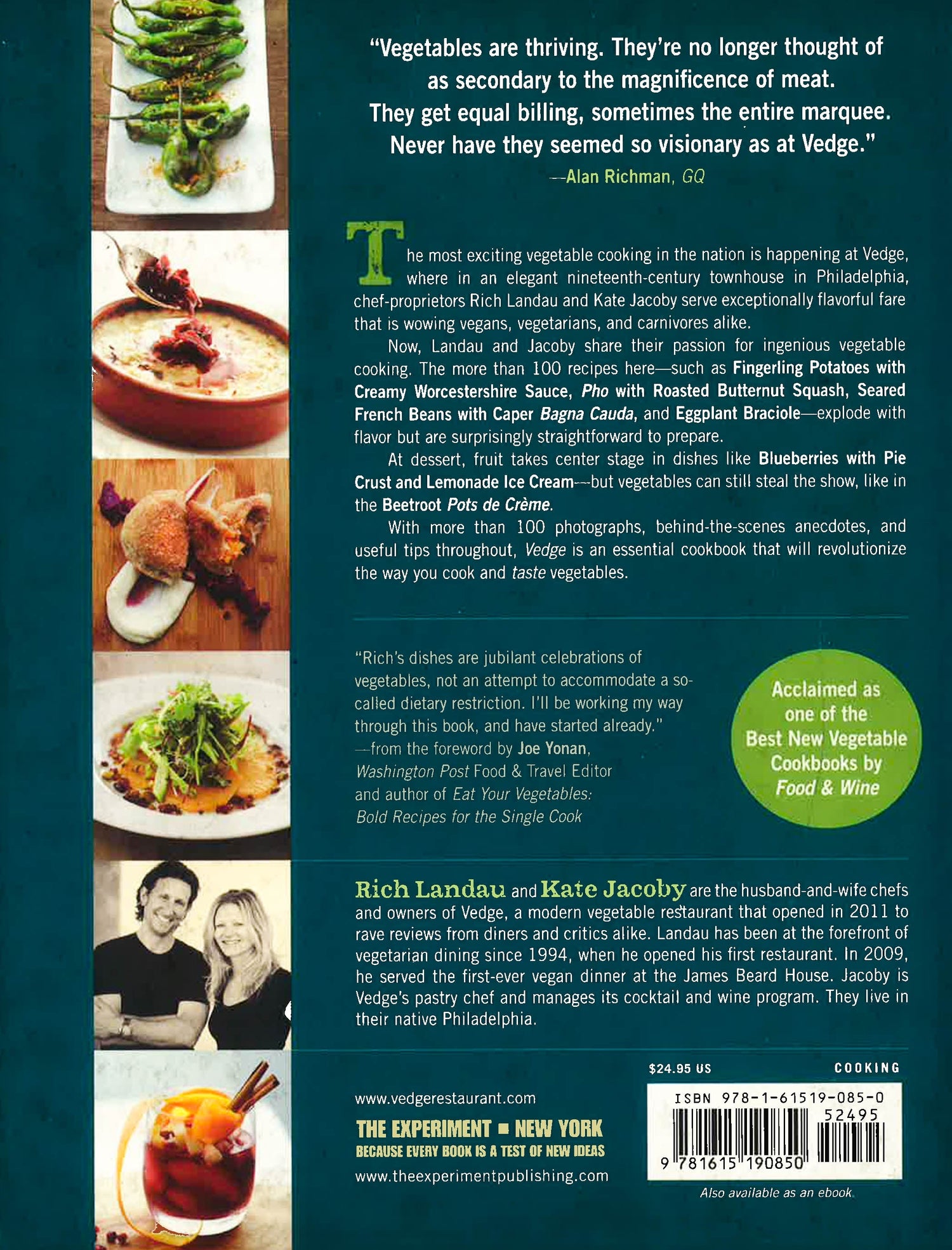 The most exciting vegetable cooking in the nation is happening at Vedge, where in an elegant nineteenth-century townhouse in Philadelphia, chef-proprietors Rich Landau and Kate Jacoby serve exceptionally flavorful fare that is wowing vegans, vegetarians, and carnivores alike. Now, Landau and Jacoby share their passion for ingenious vegetable cooking. The more than 100 recipes here--such as Fingerling Potatoes with Creamy Worcestershire Sauce, Pho with Roasted Butternut Squash, Seared French Beans with Caper Bagna Cauda, and Eggplant Braciole--explode with flavor but are surprisingly straightforward to prepare. At dessert, fruit takes center stage in dishes like Blueberries with Pie Crust and Lemonade Ice Cream--but vegetables can still steal the show, like in the Beetroot Pots de Crème. With more than 100 photographs, behind-the-scenes anecdotes, and useful tips throughout, Vedge is an essential cookbook that will revolutionize the way you cook and taste vegetables.