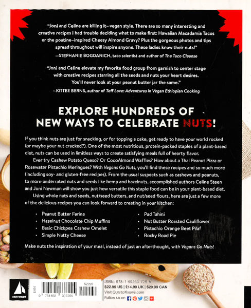 This book is the ultimate guide to all vegan nut recipes. An important source of protein in the vegan diet, Vegans Go Nuts includes 100 nutty recipes for breakfast, lunch, dinner, and snacks.the ultimate guide to protein-packed, nut-filled vegan recipes! If you think nuts are just for snacking, get ready to have your world rocked! One of the most nutritious, protein-packed staples of a plant-based diet, nuts can be used in limitless ways to create satisfying meals full of hearty flavor. From main courses, to snacks and drinks, to desserts and cheeses, nuts are used as the main building block of so many delicious vegan recipes. Vegans Go Nuts explores the many ways to cook and bake with nuts, using only vegan ingredients. From the usual suspects such as cashews and peanuts, to more underrated nuts and seeds like hemp and hazelnuts, you'll start by learning to make the essentials - nut and seed milks, butters, and flours. Accomplished authors Celine Steen and Joni Newman will show you just how versatile this staple food can be in your plant-based diet. Go nuts with 100 vegan recipes, including: Peanut Butter Farina Hazelnut Chocolate Chip Muffins Basic Chickpea Cashew Omelet Hawaiian Macadamia Tacos Simple Nutty Cheese Nut Butter Roasted Cauliflower Pistachio Orange Beet Pilaf Rocky Road Pie Make nuts the inspiration of your meal, instead of just an afterthought, with Vegans Go Nuts!
