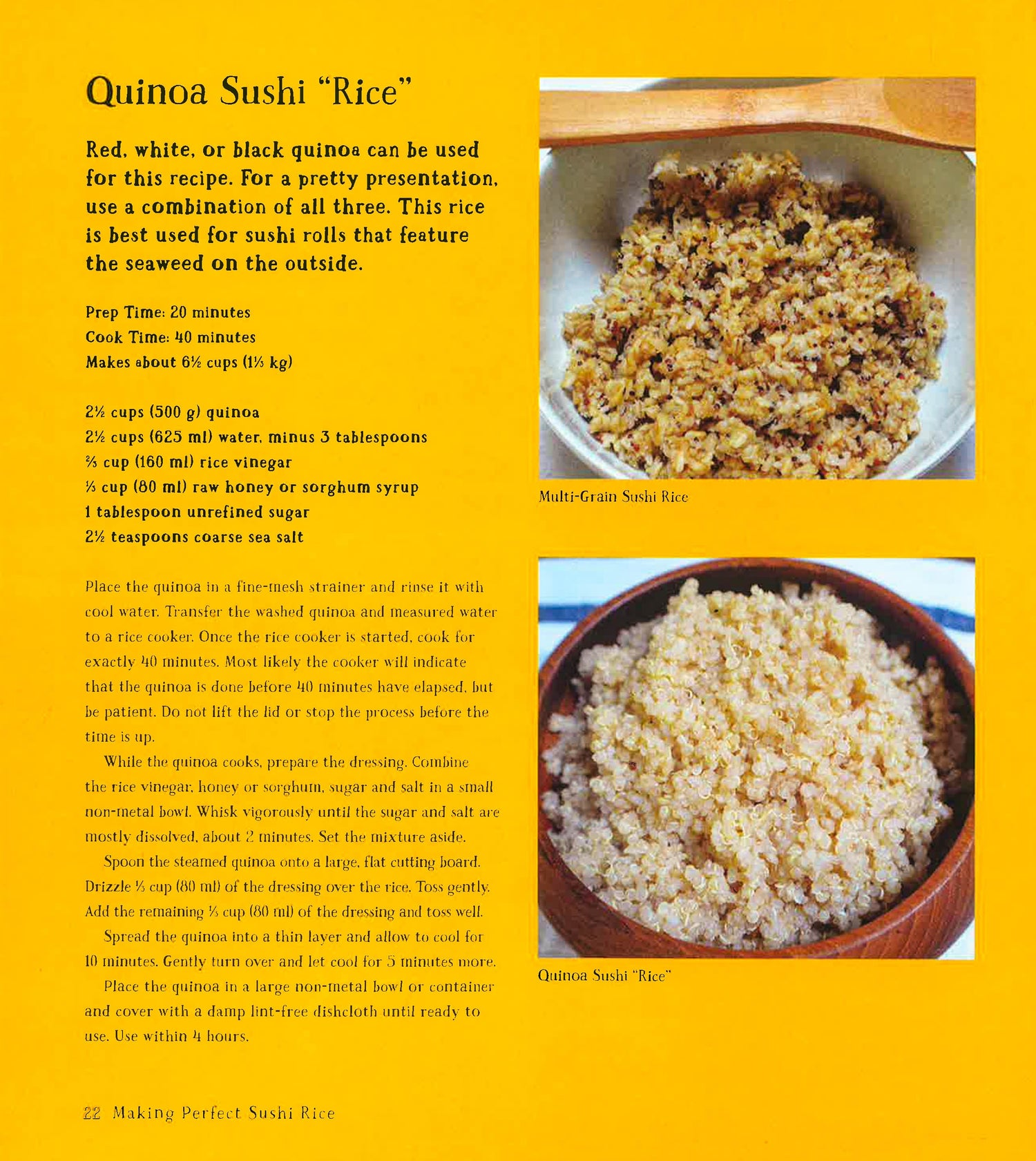 Everybody loves sushi. Now vegetarians can thoroughly enjoy it too! American sushi expert Marisa Baggett has been working passionately for years to perfect sushi recipes that take full advantage of the freshest garden vegetables, herbs, tofu, mushrooms and spices available at your local farmer's market or co-op. Her innovative use of sustainable ingredients like fresh asparagus, apple, daikon radish, basil, tomatoes, beets, corn, shiitake mushrooms and cucumbers set her sushi recipes apart from all others you may have seen. This vegetarian cookbook offers entirely new ways for localvores to enjoy their community supported agriculture and market vegetables with sushi rice. This is the ultimate farm-to-table book with a creative Asian flair! Marisa not only shows you how to make the usual thick and thin rolls but other types of sushi that are just as delicious-and even easier to make! These recipes are about combining delicious rice with tantalizing pairings you might not have tried or thought of before, such as: Apple & daikon radish Cucumber & peanut Spicy carrot & tomato Pomegranate & basil Ginger & beet Summer corn & pickled okra Sweet potato & shiitake mushrooms Strawberry & rhubarb All of Marisa's sushi recipes are extra simple to make. For example, her Tempura Avocado Hand Rolls are a snap to put together-even if you've never made sushi before! Marisa starts by giving surefire recipes for making perfect sushi rice every time. She provides tips on which vegetables work best with sushi rice and how to create original combinations. Vegetarian Sushi Secrets is a gem of a Sushi cookbook that shows you how to make foolproof thin rolls, thick rolls, inside-out rolls, hand rolls, bowl rice sushi and much more in no time at all!