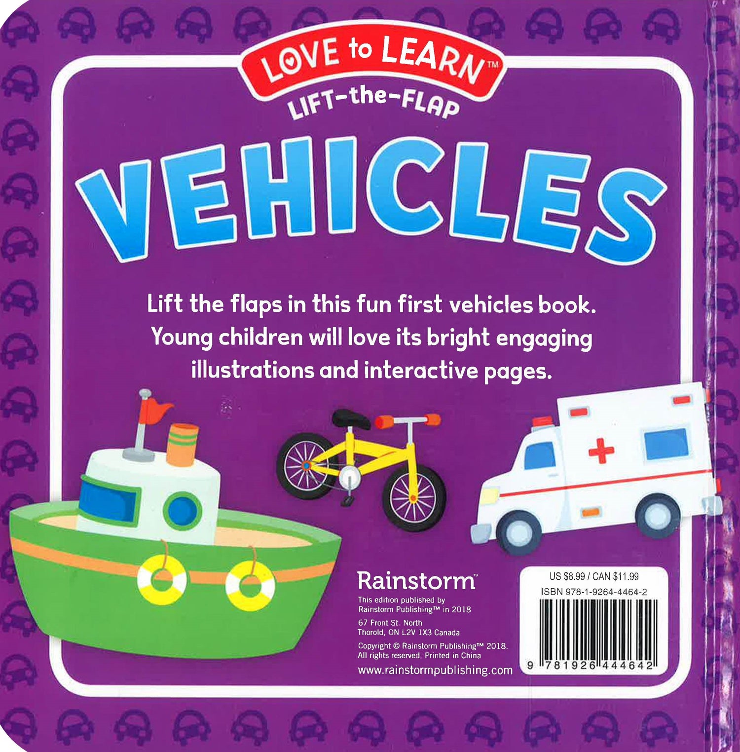 Encourage your little one's curiosity and joy of learning with this beautiful lift-the-flap board book. Large flaps and colorful illustrations offer an engaging introduction to vehicles and many first words. The perfect gift for early learners.