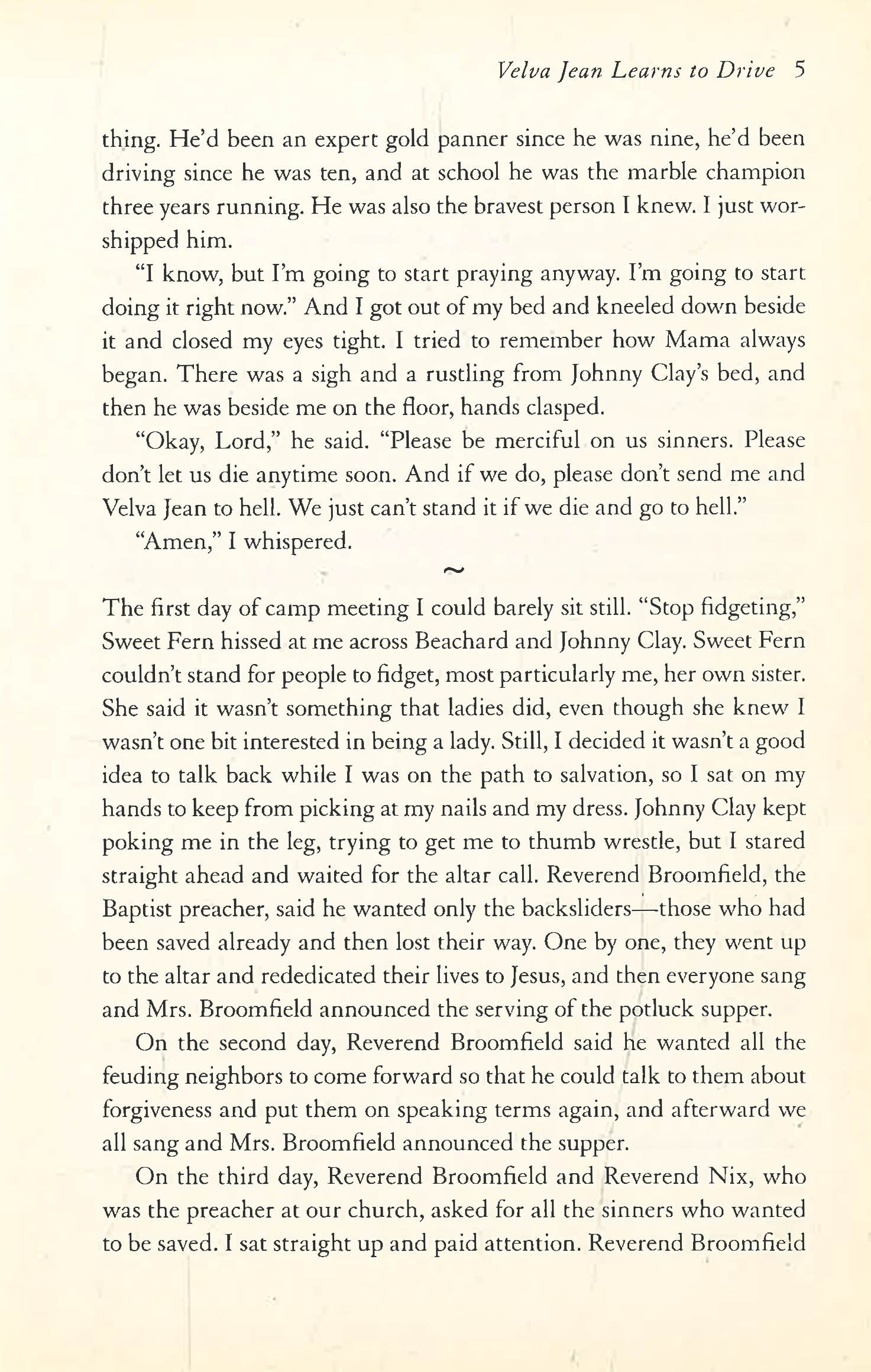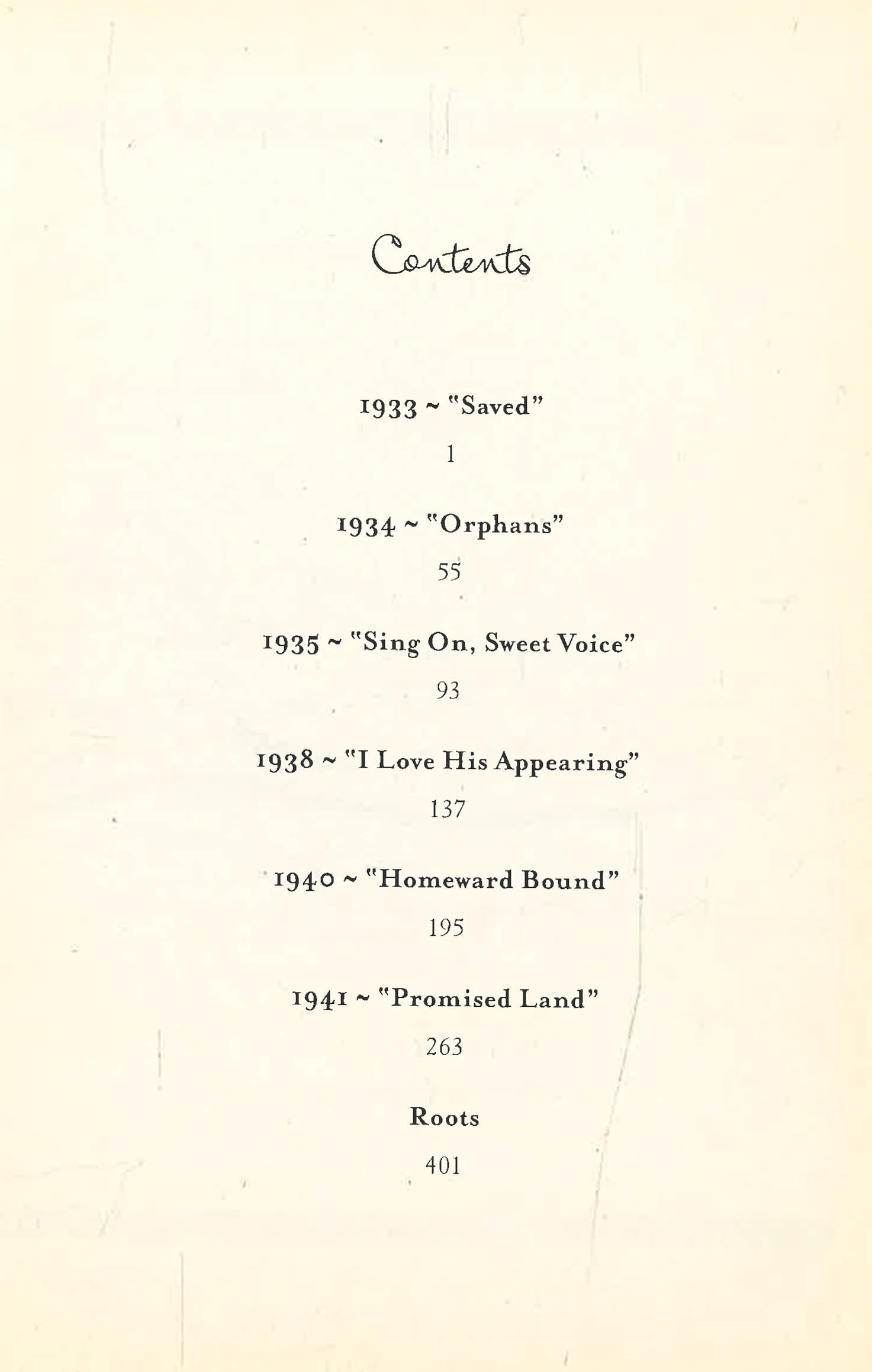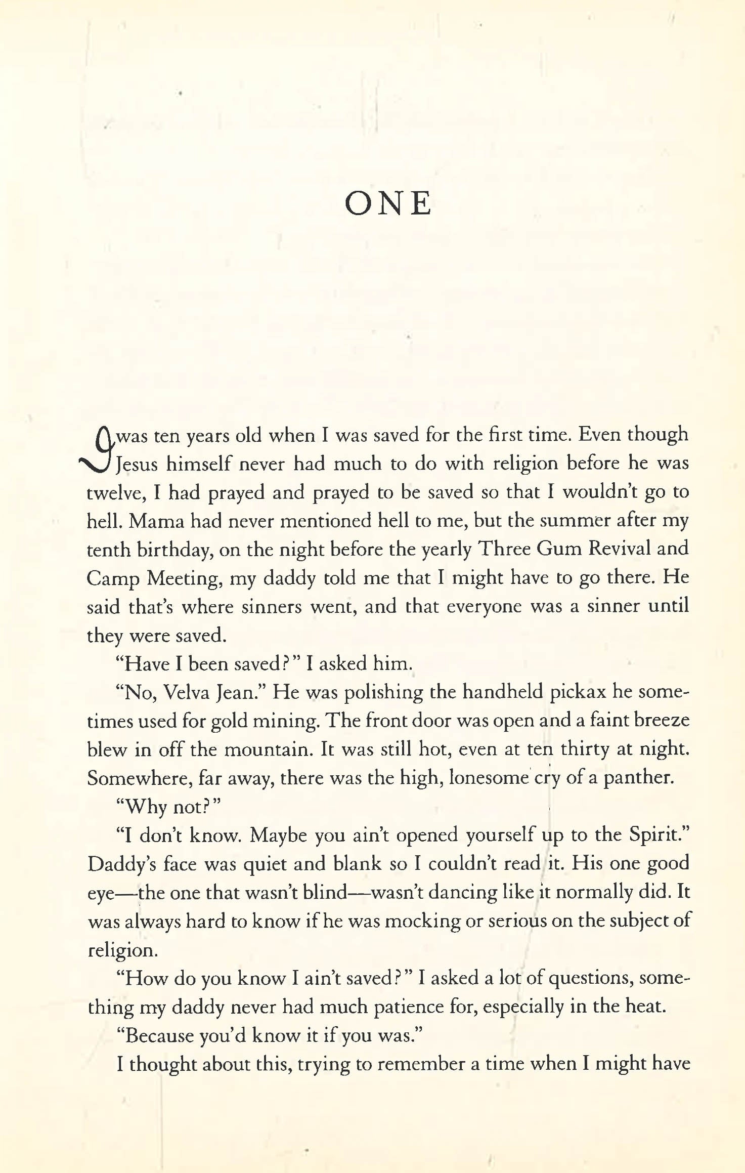 Velva Jean's mother urged her to "live out there in the great wide world," and growing up in Appalachia in the years before World War II, Velva Jean dreams of becoming a big-time singer in Nashville. Then she falls in love with Harley Bright, a handsome juvenile delinquent turned revival preacher. As their tumultuous love story unfolds, Velva Jean must choose between keeping her hard-won home and pursuing her dream of singing in the Grand Ole Opry.