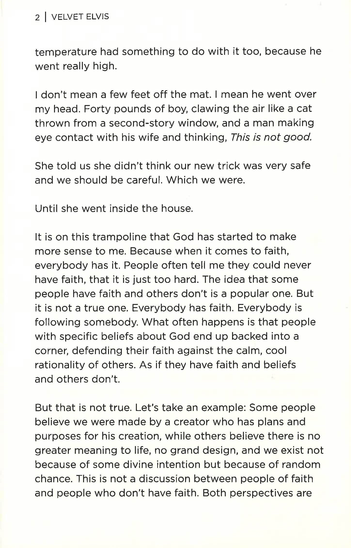 Perhaps more relevant than ever before, Rob Bell's Velvet Elvis is his original and bestselling classic. In Velvet Elvis, Bell invites readers to wrestle with their faith, and offers a radical new perspective on Jesus, the church, and Christianity today. We know there's something more. We sense it, we feel it, and we want it. But how do we find it - a spirituality that stands up to the questions of an honest, searching mind? 'This book is for those who need a fresh take on Jesus and what it means for us to live the kind of life he teaches us to live,' writes Rob Bell. This new edition of Velvet Elvis, along with the relaunch of Rob Bell's three other classic works, offers what Rob does best: original and refreshingly personal perspectives on what Christianity is really about. 'We have to test everything,' writes Bell. 'Do that to this book. Don't swallow it uncritically. Think about it. Wrestle with it. Just because I'm a Christian and I'm trying to articulate a Christian worldview doesn't mean I've got it nailed. I'm contributing to the discussion. God has spoken, and the rest is commentary, right?'