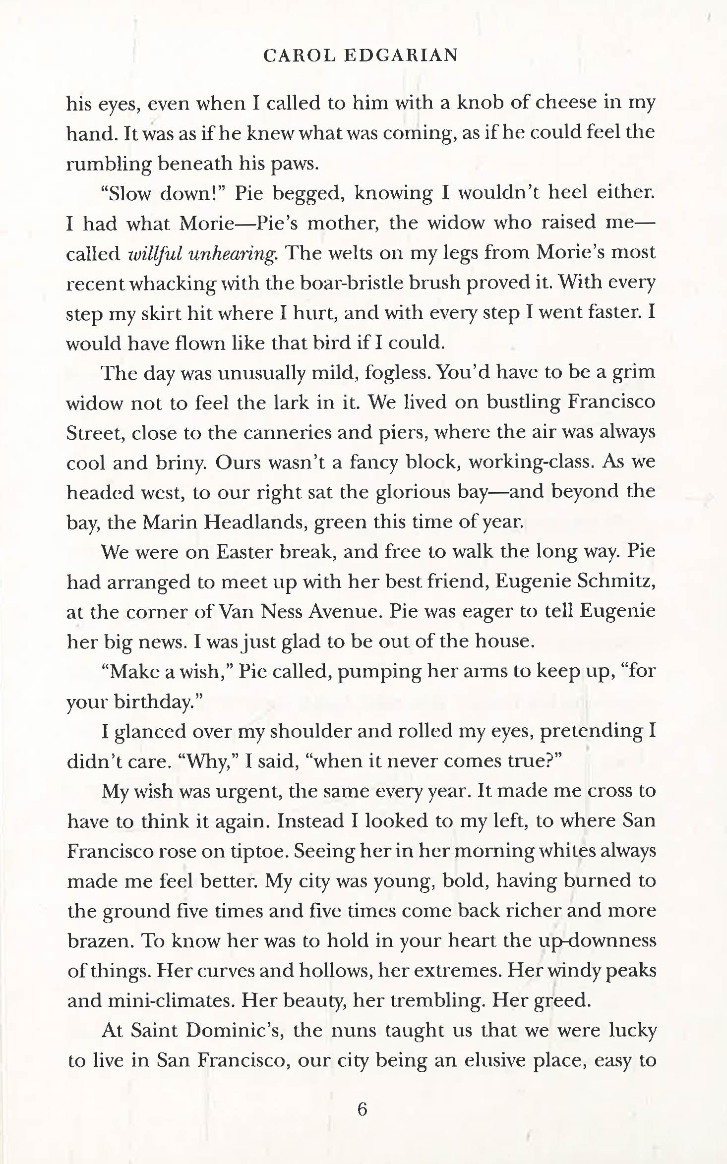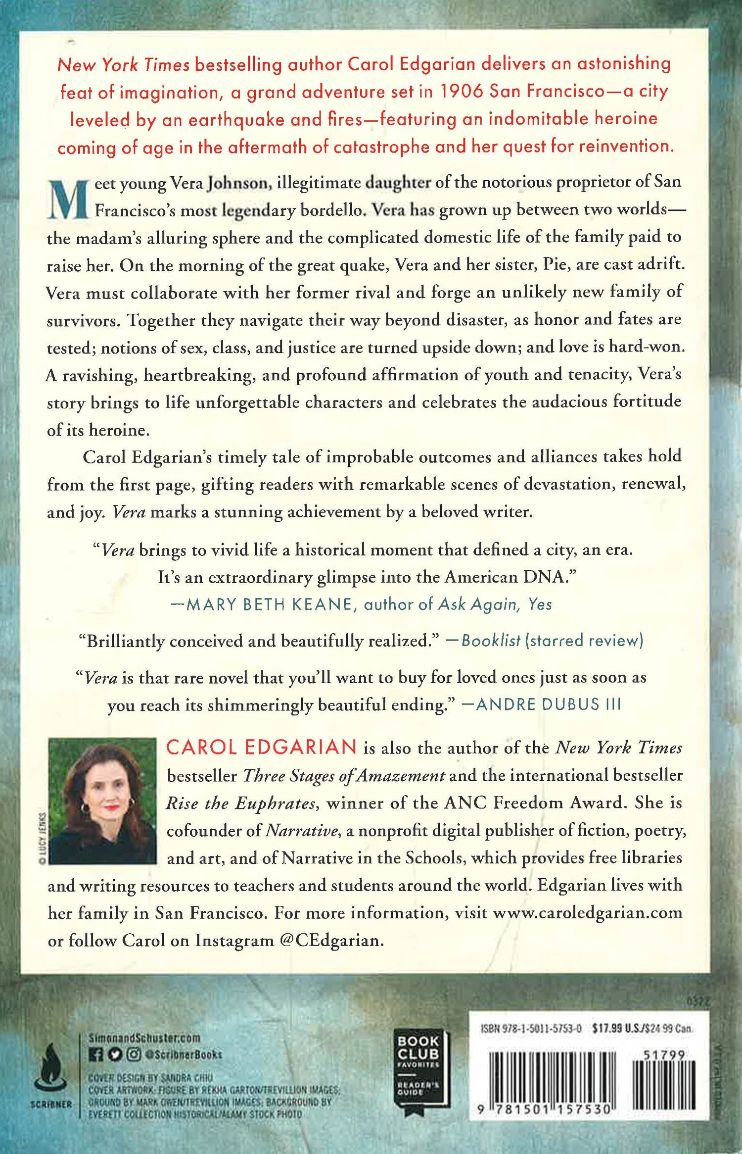 “A character-driven novel about family, power, and loyalty, (San Francisco Chronicle), Vera brings to life legendary characters - tenor Enrico Caruso, indicted mayor Eugene Schmitz and boss Abe Ruef, tabloid celebrity Alma Spreckels. This “brilliantly conceived and beautifully realized” (Booklist, starred review) tale of improbable outcomes and alliances takes hold from the first word, with remarkable scenes of devastation, renewal, and joy. Vera celebrates the audacious fortitude of its young heroine, who discovers an unexpected strength in unprecedented times.