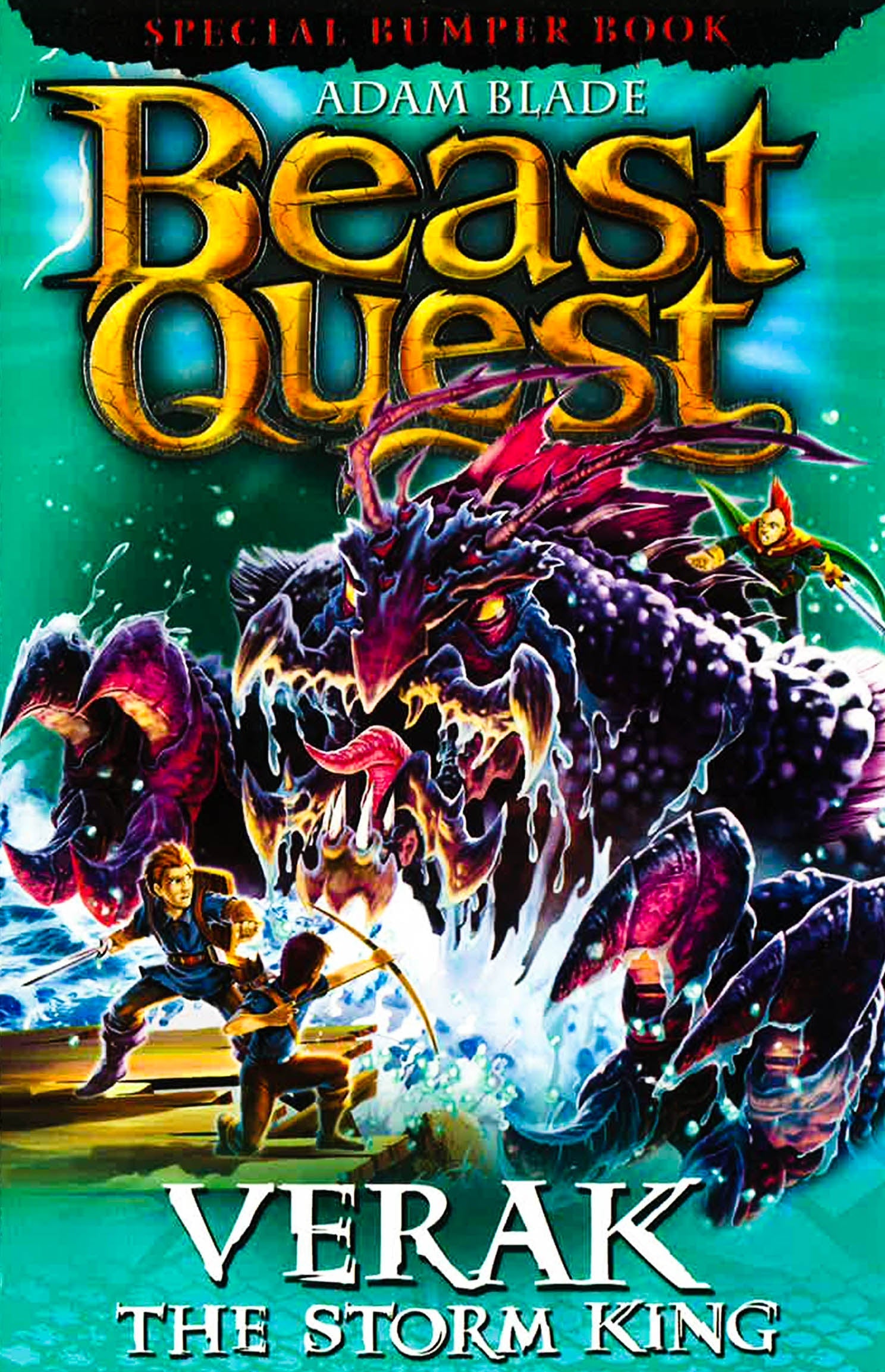 Battle Beasts and fight Evil with Tom and Elenna in the bestselling adventure series for boys and girls aged 7 and up! Don't miss this new bumper special edition of the bestselling series, in which our heroes return to the realm of Gwildor to battle an old enemy and a terrifying new sea Beast - Verak the Storm King! If you like Beast Quest, check out Adam Blade's other series: Team Hero, Sea Quest and Beast Quest: New Blood!