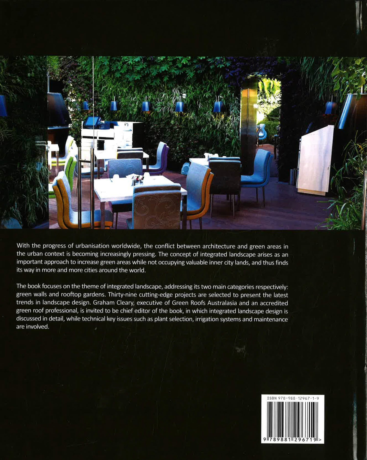 With the progress of urbanisation worldwide, the conflict between architecture and green areas in the urban context is becoming increasingly pressing. The concept of integrated landscape arises as an important approach to increase green areas while not occupying valuable inner city lands, and thus finds its way in more and more cities around the world.The book focuses on the theme of integrated landscape, addressing its two main categories respectively: green walls and rooftop gardens. Thirty-nine cutting-edge projects are selected to present the latest trends in landscape design. Graham Cleary, executive of Green Roofs Australasia and an accredited green roof professional, is invited to be chief editor of the book, in which integrated landscape design is discussed in detail, while technical key issues such as plant selection, irrigation systems and maintenance are involved.