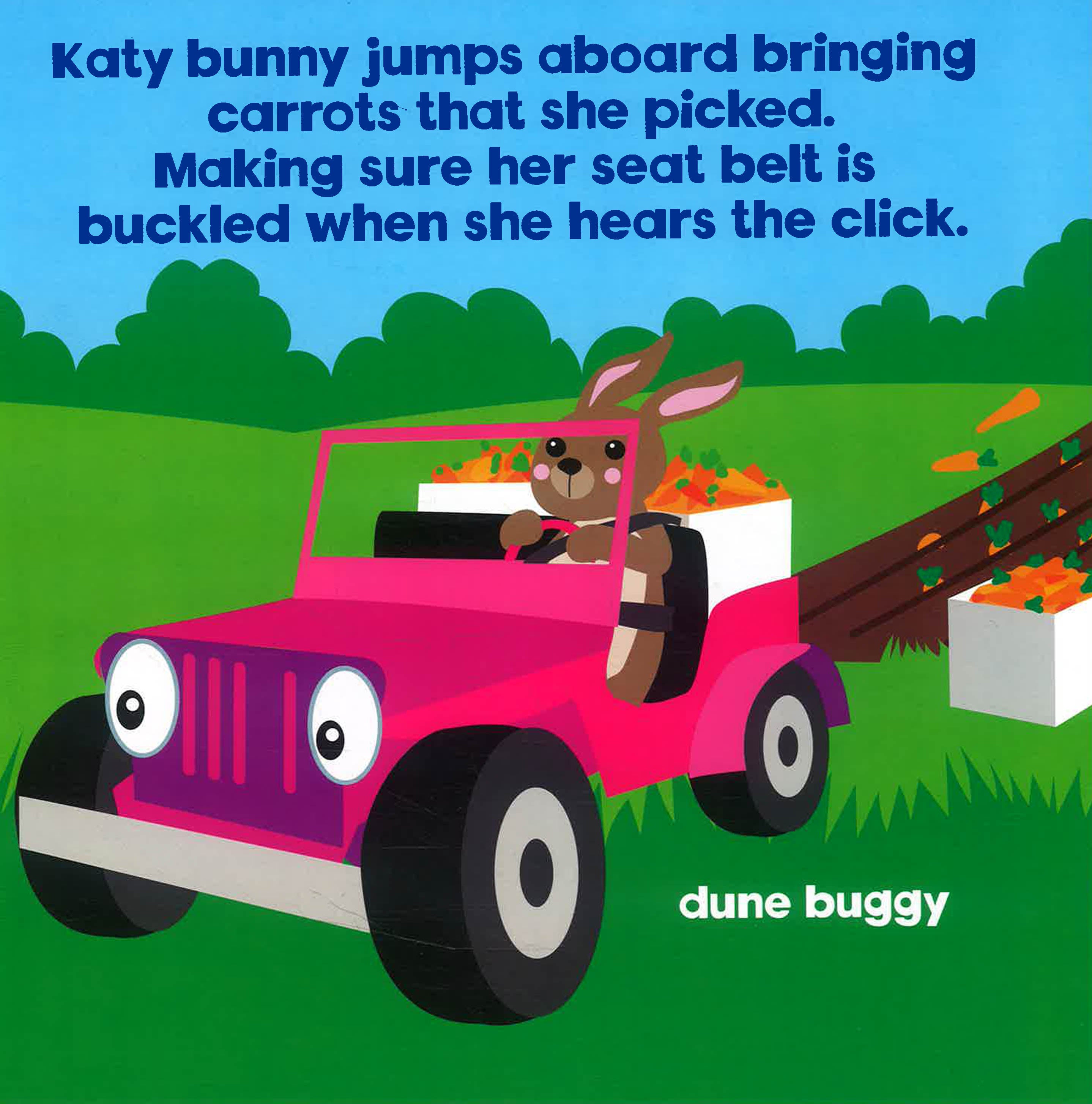 This sturdy board book introduces different types of cars and trucks. With bright, bold colors and rhyming text, this is sure to be a favorite!