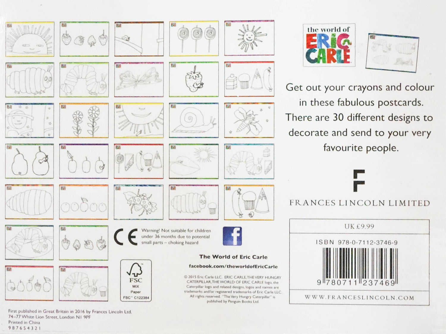 The World of Eric Carle embodies the joys of playful learning and an appreciation of art and nature that generations have experienced through Eric Carle's timeless stories and unique artwork. A box containing 30 postcards to colour in - starring The Very Hungry Caterpillar and featuring characters from the World of Eric Carle.