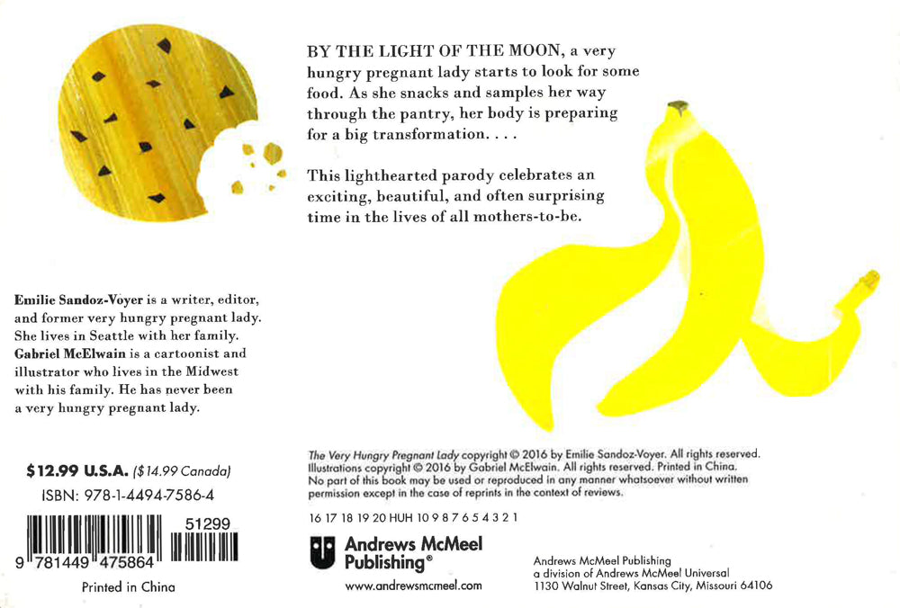 A lighthearted parody of Eric Carle's seminal children's book, The Very Hungry Pregnant Lady tackles the mystery faced by pregnant women everywhere-how can I have so little space for my stomach and yet be hungry all the time? Taking place in the wee hours of the morning, the story follows a pregnant woman as she samples and snacks her way through the pantry. When she ultimately goes into labor, the birth of her baby and the discovery of her new identity as a mother mirror the transformation of Eric Carle's hungry caterpillar into a beautiful butterfly. The Very Hungry Pregnant Lady is both a send-up and a celebration of this strange, ridiculous, and exciting time in the lives of all mothers-to-be.