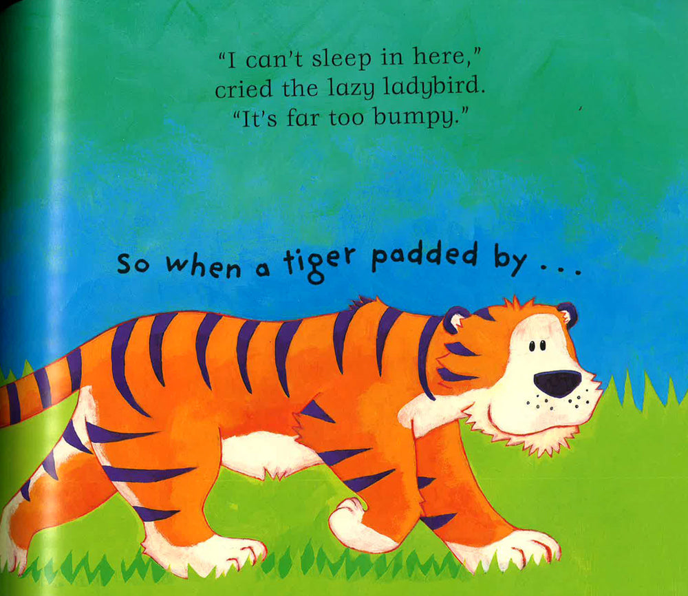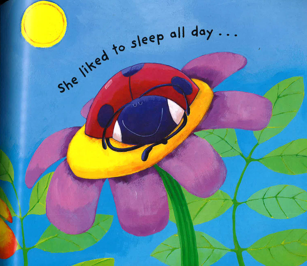 The Lazy Ladybird likes to sleep all day and all night. And because she sleeps all day and all night, she doesn't know how to fly. So when she wants to find somewhere new to sleep she decides to catch a lift on a passing animal