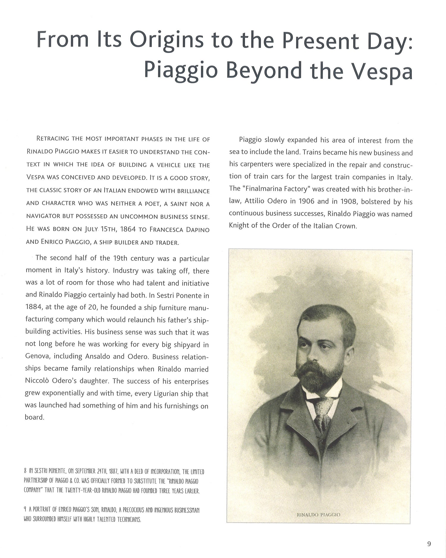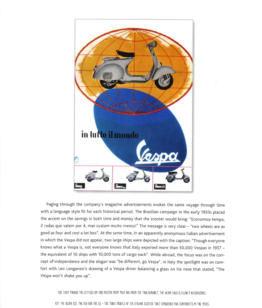 When the Vespa debuted in 1946, it was received with an air of skepticism. It was not a motorcycle but rather a vehicle born from the union between a car and an airplane. But it soon became a success. It was the first two-wheeled version of the "compact" and responded perfectly to the post-war need for mobility. It has also become famous for its unique design that many have tried to imitate; it truly is an icon. The Vespa is not just any scooter, it is THE scooter, known and loved all over the world. It is a rare example of a motor vehicle that has survived trends and crises while at the same time staying faithful to its original concept; a concept based on a sheet metal body that still distinguishes it from other scooters whose bodies are made of plastic. It is so much more than a mode of transportation; it is a time machine that lets us re-live some of the world's most exclusive moments of the last 72 years. From history to sports and from cinema to travel, this book's anecdotes and images, some of which have never been published before, narrate the never-ending evolution of a piece of Italy that has conquered all five continents and sold over 18 million vehicles.