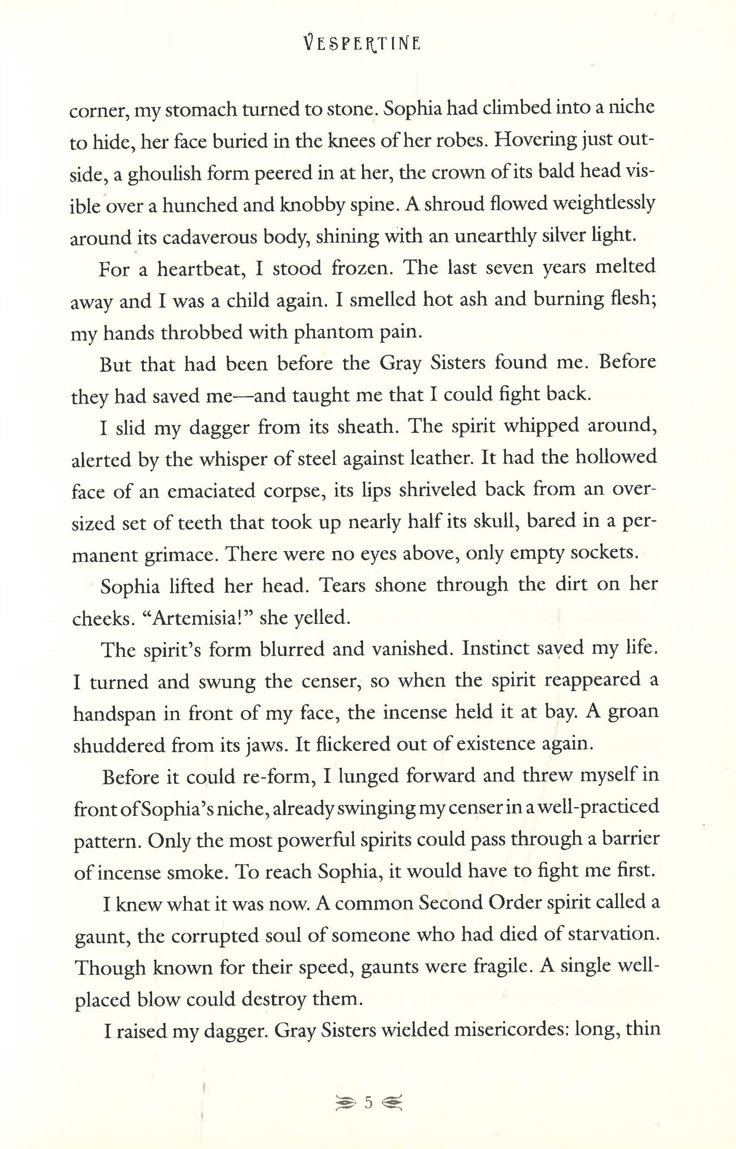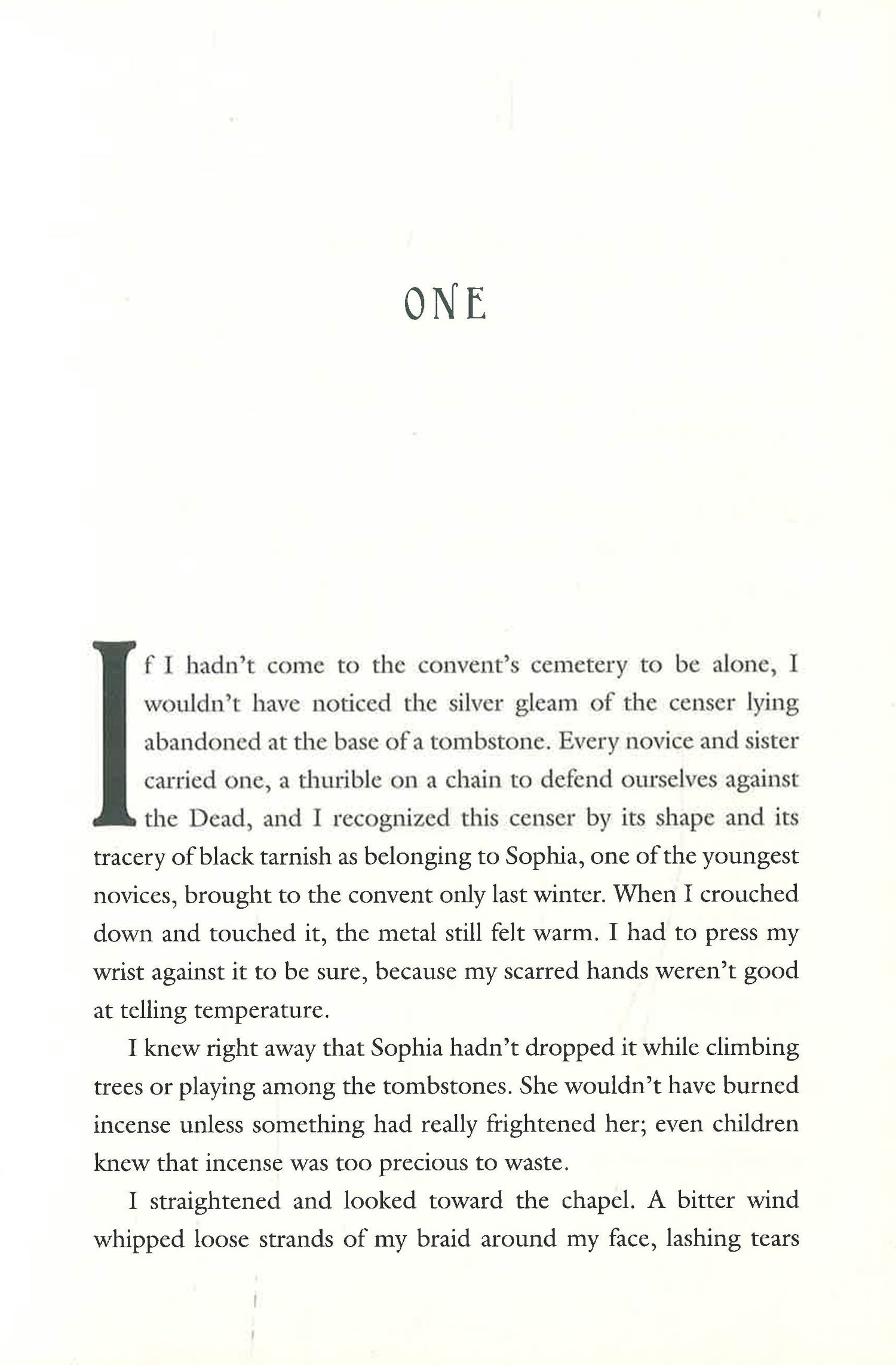 Artemisia is training to be a Gray Sister, a nun who cleanses the bodies of the deceased so that their souls can pass on; otherwise, they will rise as twisted spirits with a ravenous hunger for the living. She’d rather deal with the dead than the living, who point and whisper about the odd girl who was once possessed by a violent spirit.