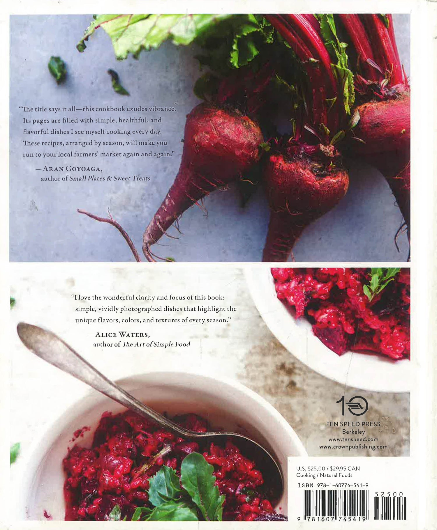 Recipes take you on a journey through spring’s Pasta with Nettle Pesto and Blistered Snap Peas, summer’s Berry–Coconut Milk Ice Pops, fall’s Turkey Burgers with Balsamic Figs, and winter’s Sparkling Pomegranate Punch. Featuring photo pairings that celebrate not only the finished dishes but also the striking ingredients that create them—plus a photograph of each and every recipe—this book reveals an artistic picture of whole foods eating.