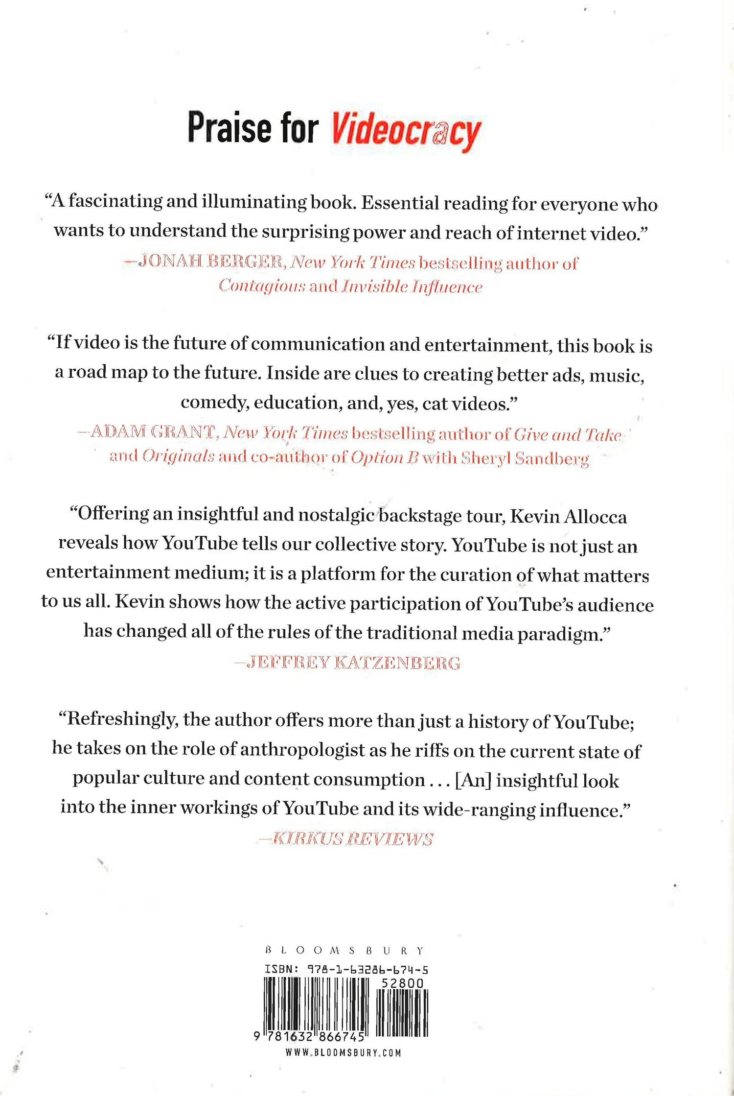 YouTube is the biggest pool of cultural data since the beginning of recorded communication, with four hundred hours of video uploaded every minute. (It would take you more than sixty-five years just to watch the vlogs, music videos, tutorials, and other content posted in a single day!) This activity reflects who we are, in all our glory and ignominy. As Allocca says, if aliens wanted to understand our planet, he'd give them Google. If they wanted to understand us, he'd give them YouTube.In Videocracy, Allocca lays bare what YouTube videos say about our society and how our actions online--watching, sharing, commenting on, and remixing the people and clips that captivate us--are changing the face of entertainment, advertising, politics, and more. Via YouTube, we are fueling social movements, enforcing human rights, and redefining art--a lot more than you'd expect from a bunch of viral clips.