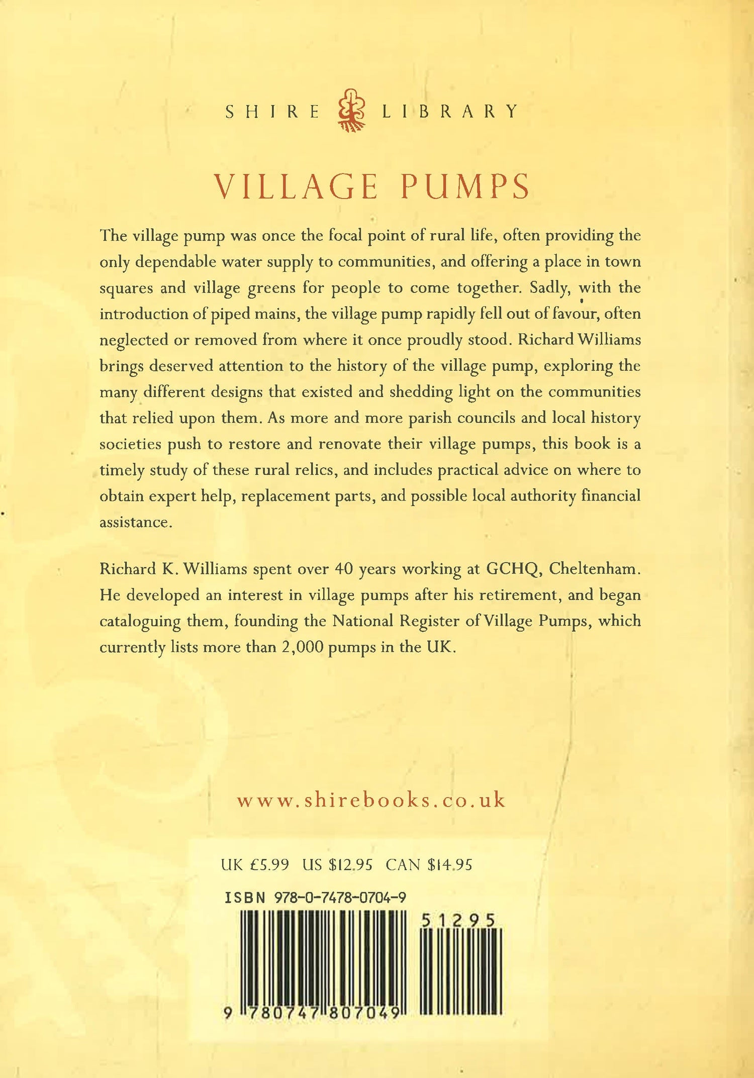 The village pump was once the focal point of rural life, providing the only water supply to communities and offering a place in town squares and village greens for people to come together. Sadly, with the introduction of piped mains, the village pump rapidly fell out of favour, often neglected or removed from where they once proudly stood. Richard Williams brings deserved attention to the history of the village pump, exploring the many different designs that existed and shedding light on the communities that relied upon them. As recent movements from parish councils and local history societies push to restore and renovate their village pumps, this book is a timely study of these rural relics, and includes practical advice on where to obtain expert help, replacement parts, and possible local authority financial assistance.