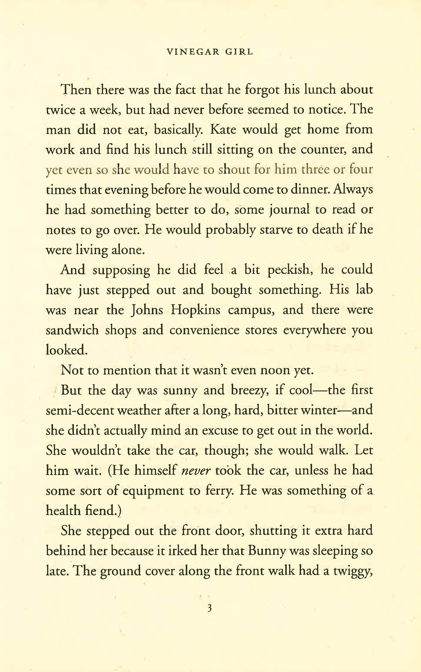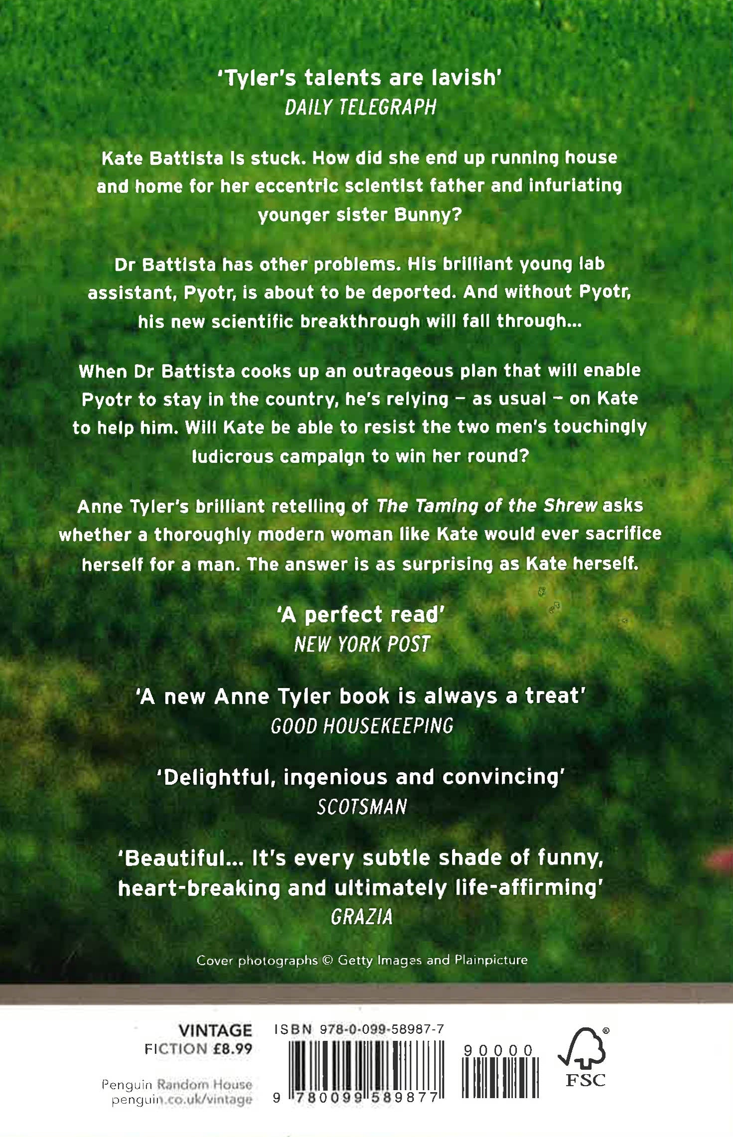 The hilarious new novel from the bestselling author of A Spool of Blue Thread'A thoroughly modern love story' Guardian, Books of the YearKate Battista is stuck. How did she end up running house and home for her eccentric scientist father and infuriating younger sister Bunny? Dr Battista has other problems. His brilliant young lab assistant, Pyotr, is about to be deported. And without Pyotr, his new scientific breakthrough will fall through...When Dr Battista cooks up an outrageous plan that will enable Pyotr to stay in the country, he's relying - as usual - on Kate to help him. Will Kate be able to resist the two men's touchingly ludicrous campaign to win her round?Anne Tyler's brilliant retelling of The Taming of the Shrew asks whether a thoroughly modern woman like Kate would ever sacrifice herself for a man. The answer is as surprising as Kate herself.