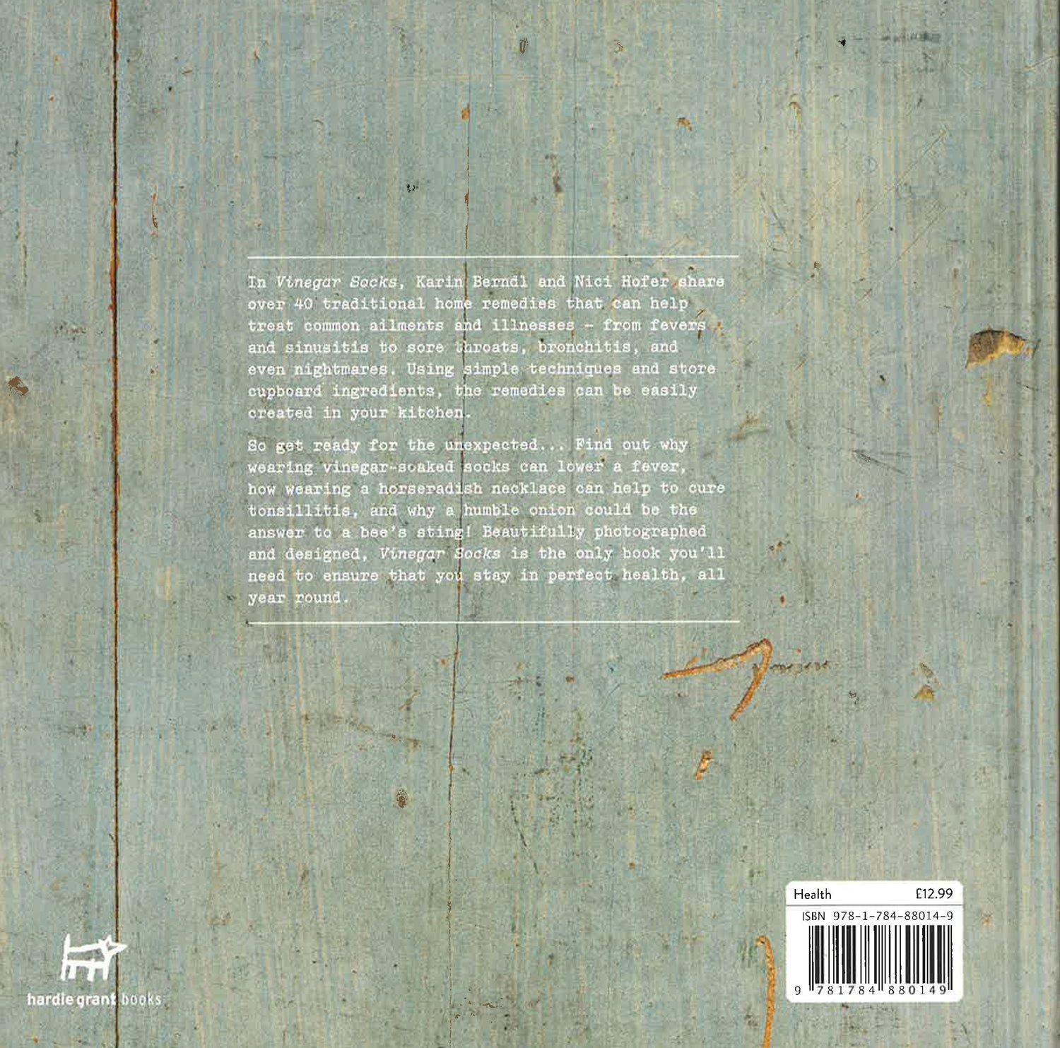 Karin Berndl and Nici Hofer are firm believers in the power of natural remedies. In Vinegar Socks, they share 40 traditional home remedies that have been handed down through the generations and are tried and tested in curing common ailments and illnesses, such as fevers, sinusitis, sore throats, bronchitis, diarrhoea, wounds and wasp stings. All of these remedies can be made easily at home using storecupboard ingredients and simple techniques. Discover the amazing healing properties of nature's abundance and find drug-free relief with these invaluable at-home solutions. Concoctions include vinegar socks for a fever (wearing soaked vinegar socks stimulates the blood flow and lowers the temperature as well as mobilizing the immune system), tummy tea to cure flatulence, horseradish necklace to treat a fever, and sap ointment for wounds. With cute styling and a strong design element, Vinegar Socks is the only book you'll need this Fall to ensure you stay in perfect health.