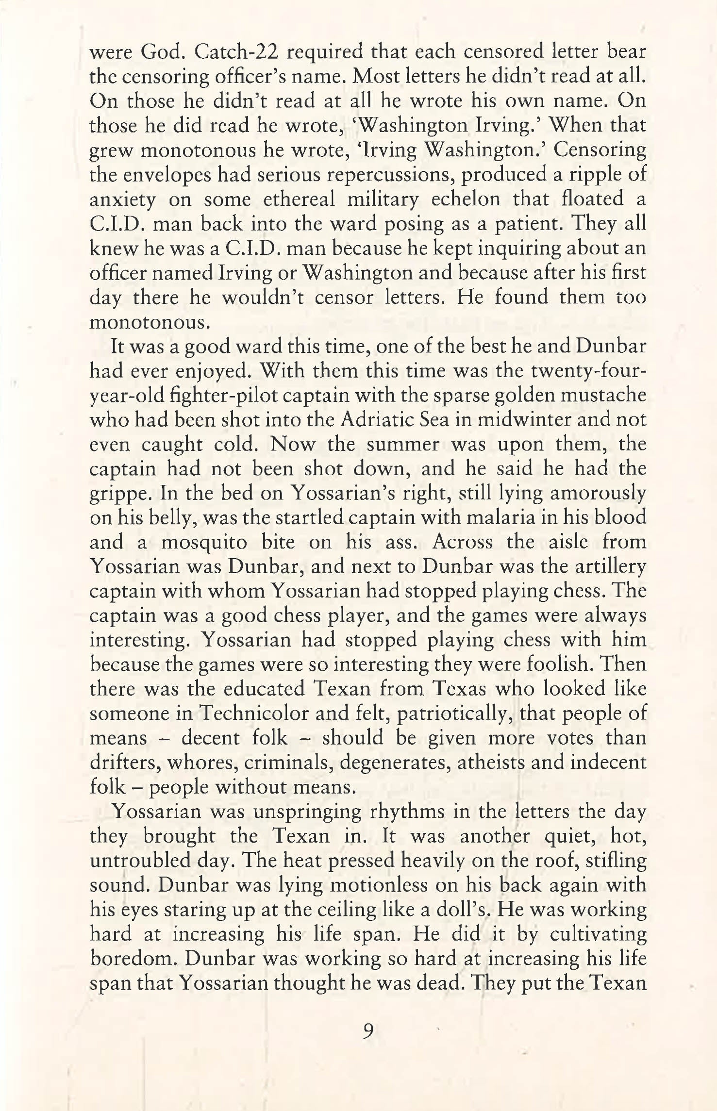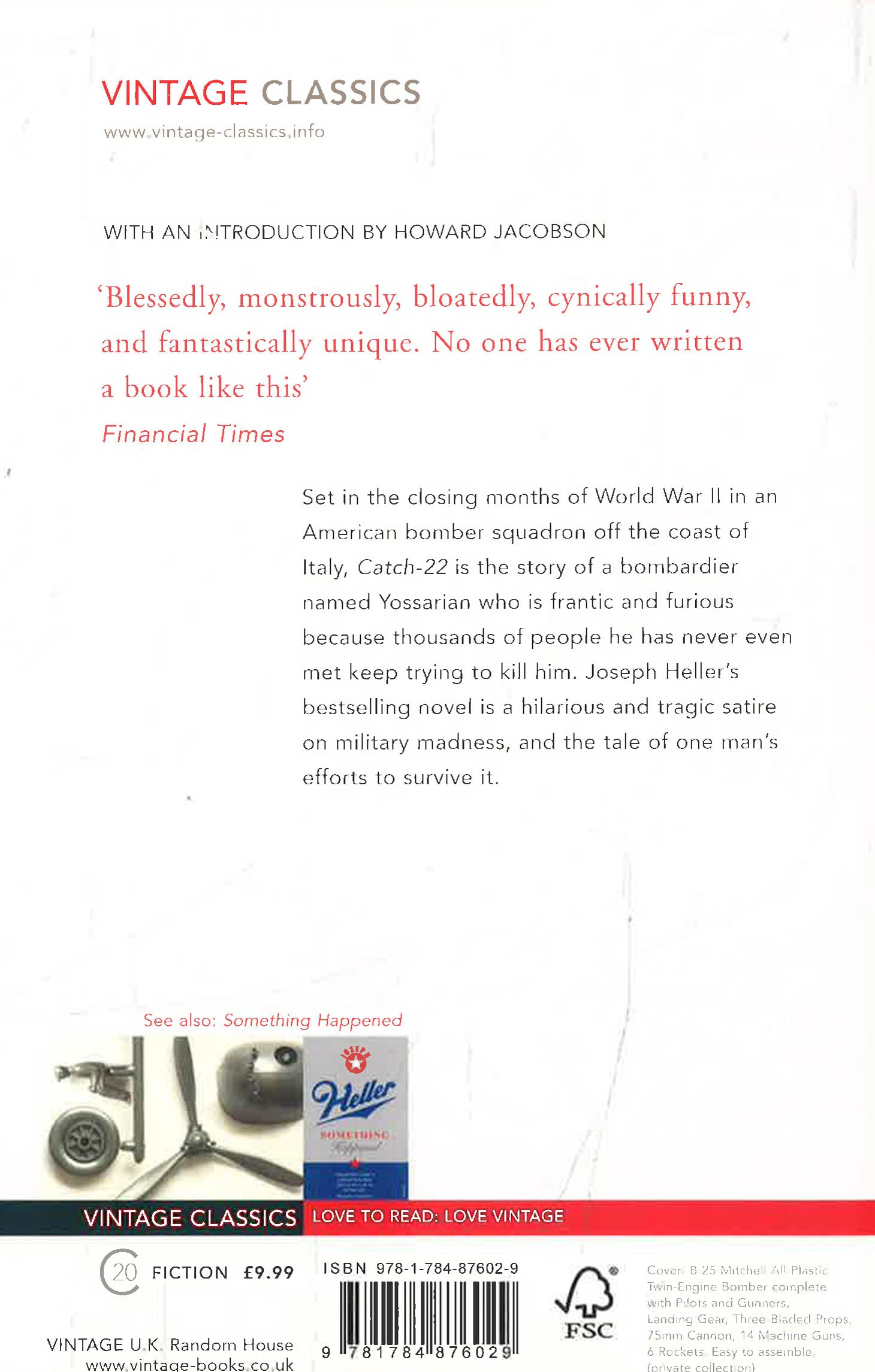 Set in Italy during World War II, this is the story of the incomparable, malingering bombardier, Yossarian, a hero who is furious because thousands of people he has never met are trying to kill him. But his real problem is not the enemy—it is his own army, which keeps increasing the number of missions the men must fly to complete their service. Yet if Yossarian makes any attempt to excuse himself from the perilous missions he’s assigned, he’ll be in violation of Catch-22, a hilariously sinister bureaucratic rule: a man is considered insane if he willingly continues to fly dangerous combat missions, but if he makes a formal request to be removed from duty, he is proven sane and therefore ineligible to be relieved.