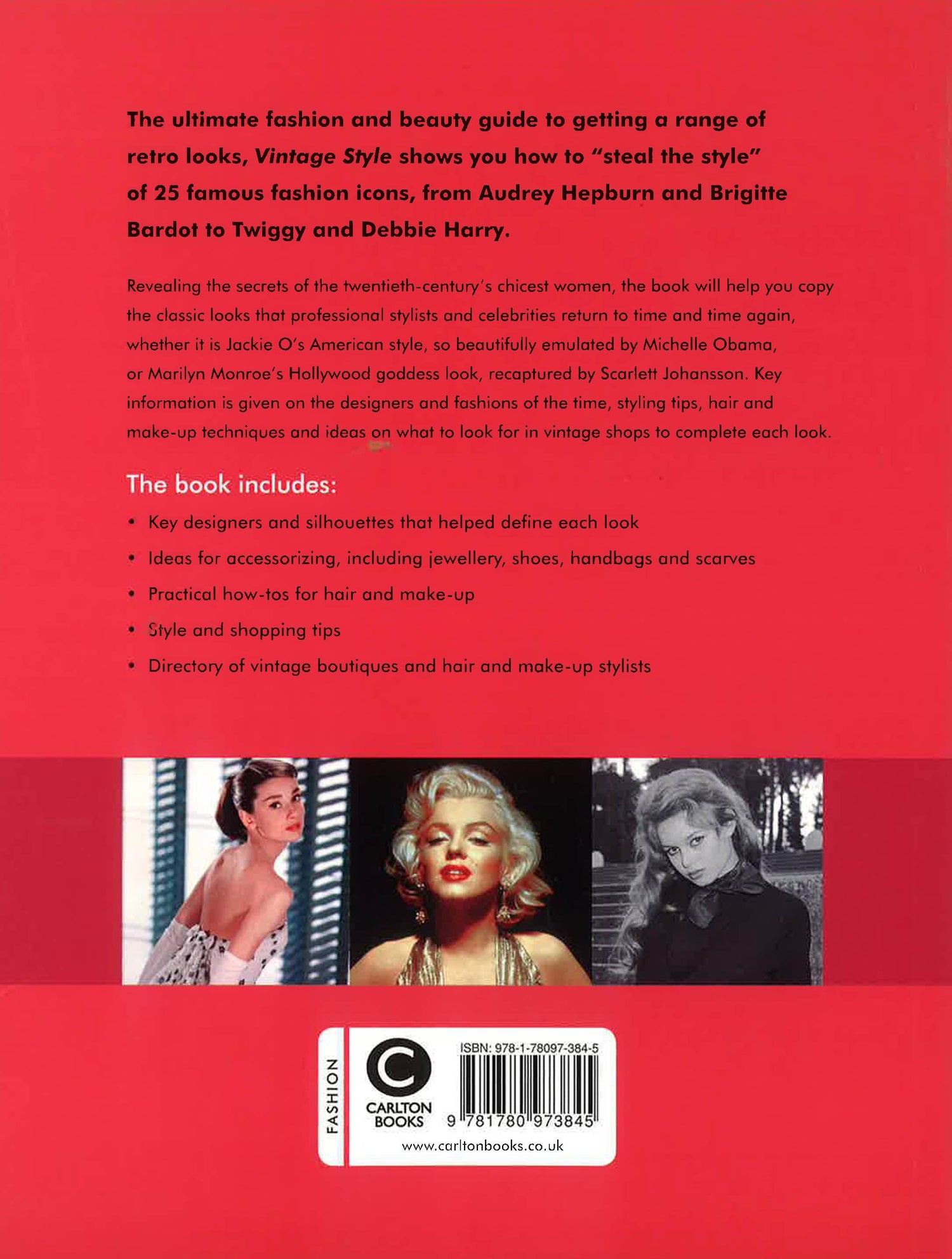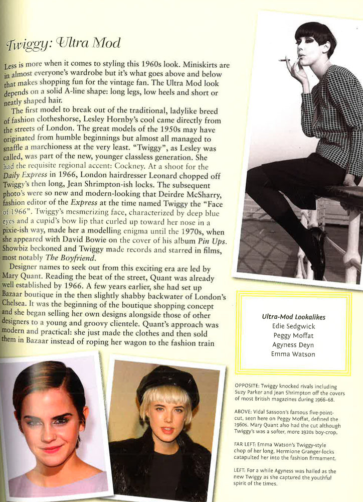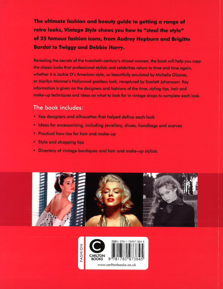 Copying the look of the world's celebrities and stars is a recurring feature of magazines and blogs. Here we take a vintage view, looking back at the 25 most iconic women of the past century and how to emulate their looks with up-to-the minute fashion advice. Each look, whether it's Brigitte Bardot's Bombshell, Audrey Hepburn's Ingenue or Grace Kelly's American Classic, is deconstructed. Along with key information on the vintage designers and fashion styles of the time, there are styling tips, hair and make-up techniques and shopping lists to aid in acquiring vintage and reproduction pieces. Each chapter opens with an image of the icon of each style, and images of similarly styled celebrities or models. The book concludes with a directory on vintage and reproduction-vintage boutiques as well as hair and makeup stylists who can create period looks.